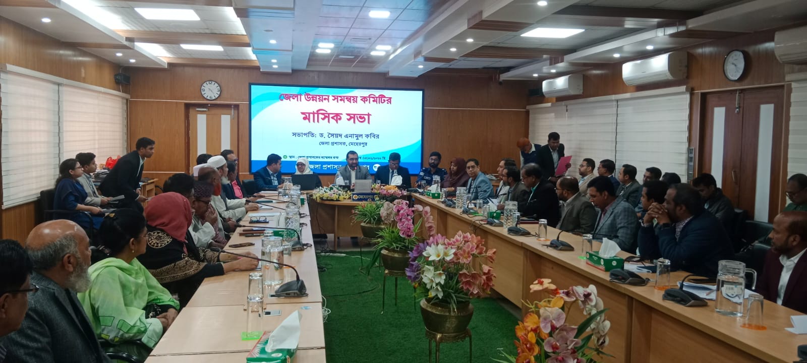 সভায় মেহেরপুর জেলার বিভিন্ন উন্নয়নমূলক কর্মকাণ্ডের অগ্রগতি, চলমান প্রকল্পের বাস্তবায়ন এবং ভবিষ্যৎ কর্মপরিকল্পনা নিয়ে বিস্তারিত আলোচনা করা হয়। জেলা প্রশাসক সংশ্লিষ্ট দপ্তরসমূহকে সমন্বয়ের মাধ্যমে কার্যক্রম বাস্তবায়নের নির্দেশনা প্রদান করেন।