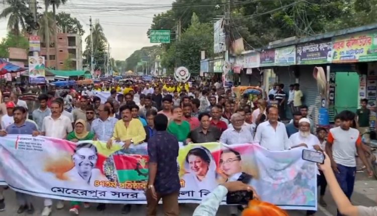 মেহেরপুর অফিস: মেহেরপুর সদর উপজেলা ও পৌর বিএনপির উদ্যোগে বাংলাদেশ জাতীয়তাবাদী দলের (বিএনপি) ৪৭তম প্রতিষ্ঠাবার্ষিকী উপলক্ষে বর্ণাঢ্য র্যালি ও সমাবেশ অনুষ্ঠিত হয়েছে।