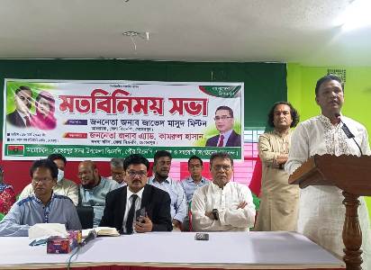 স্টাফ রিপোর্টার: মেহেরপুর সদর উপজেলা ও পৌর বিএনপির এবং অঙ্গ ও সহযোগী সংগঠনের নেতৃবৃন্দদের মতবিনিময়সভা অনুষ্ঠিত হয়েছে। গতকাল মঙ্গলবার বেলা ১১টায় মেহেরপুর খান কমিউনিটি সেন্টারে সদর উপজেলা ও পৌর বিএনপির মতবিনিময়সভার আয়োজন করা হয়। মেহেরপুর জেলা বিএনপির আহ্বায়ক জাভেদ মাসুদ মিল্টনের সভাপতিত্বে মতবিনিময়সভাটির সঞ্চালনা করেন মেহেরপুর জেলা বিএনপির সদস্য সচিব অ্যাড. কামরুল হাসান। অনুষ্ঠানে উপস্থিত ছিলেন জেলা বিএনপির যুগ্ম আহ্বায়ক ফয়েজ মোহাম্মদ, সদস্য আলমগীর খান সাতু, খায়রুল বাশার, হাফিজুর রহমান হাফি, রোমানা আহাম্মেদ, ওমর ফারুক লিটন, জেলা বিএনপির সাবেক সহ-সাংগঠনিক সম্পাদক কাজী মিজান মেনন, জেলা বিএনপির সাবেক মহিলা বিষয়ক সম্পাদিকা নাজমিন নাহার রিনা, জেলা বিএনপির সাবেক যুগ্ম সাধারণ সম্পাদক আব্দুর রহিম, জেলা স্বেচ্ছাসেবক দলের আহ্বায়ক আজমুল হোসেন মিন্টু, জেলা যুবদলের সহ-সভাপতি আনিসুল হক লাভলু, জেলা জাসাসের সদস্য সচিব বাঁকা বিল্লাহ, পৌর বিএনপির সাবেক সাধারণ সম্পাদক আলমগীর হোসেন, জেলা যুবদলের আইন বিষয়ক সম্পাদক অ্যাড. এহান উদ্দিন মনা, জেলা মহিলা দলের সহ-সভাপতি ছাবিহা সুলতানা, জেলা জিয়া মঞ্চের আহ্বায়ক অ্যাড. নজরুল ইসলাম, জেলা জিয়া মঞ্চের সদস্য সচিব মনিরুল ইসলাম মনি, জেলা স্বেচ্ছাসেবক দলের যুগ্ম আহ্বায়ক ফিরোজুর রহমান ফিরোজ, জেলা স্বেচ্ছাসেবক দলের ইলিয়াস হোসেন, বিএনপি নেতা মোশিউল আলম দ্বীপু, আব্দুল লতিফ, লিটন মাস্টারসহ বিএনপির নেতাকর্মীরা উপস্থিত ছিলেন।