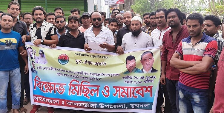 আলমডাঙ্গা ব্যুরো: আলমডাঙ্গা উপজেলা যুবদলের সদ্য গঠিত আহ্বায়ক কমিটি বাতিলের দাবিতে বিক্ষোভ সমাবেশ অনুষ্ঠিত হয়েছে। গতকাল ২০ এপ্রিল বুধবার বিকেলে হাজি মোড়স্থ শহিদুল কাউনাইন টিলু মিয়ার চাতালের সামনে বিক্ষোভ মিছিল ও প্রতিবাদ সমাবেশ অনুষ্ঠিত হয়। এসময় বিক্ষুদ্ধ নেতা-কর্মীরা চুয়াডাঙ্গা জেলা যুবদলের সাধারণ সম্পাদক সাইফুর রহমান ঝন্টু, যুগ্ম সাধারণ সম্পাদক আব্দুস সালাম বিপ্লব ও সাংগঠনিক সম্পাদক জাহিদ মোহাম্মদ রাজিব খান স্বাক্ষরিত কমিটি বাতিলের জোর দাবি জানান। এই কমিটিতে চুয়াডাঙ্গা জেলা যুবদলের সভাপতি শরিফ-উর-জামান সিজারের স্বাক্ষর না থাকায় আলমডাঙ্গা উপজেলা কমিটি গঠনতন্ত্র মোতাবেক হয়নি দাবি করে বক্তারা আরও বলেন, অযোগ্য ব্যক্তিদের দ্বারা গঠিত এই কমিটি অবিলম্বে বাতিল করে তারেক রহমানের হাতকে শক্তিশালী করার লক্ষ্যে তৃণমূলের মতামতের ভিত্তিতে নতুন কমিটি জন্য জোর দাবি জানাচ্ছি। সমাবেশে বক্তারা বলেন, এই দাবি না মানা পর্যন্ত প্রতিবাদ সমাবেশ অব্যাহত থাকবে। এসময় চুয়াডাঙ্গা জেলায় এই তিনজনকে অবাঞ্ছিত ঘোষণা করেন। এসময় উপস্থিত ছিলেন যুবদল নেতা শফিকুল আজম ডালিমের সভাপতিত্বে ও রহিদুজ্জামান রহিদের উপস্থাপনায় সেচ্ছাসেবক দলের যুগ্ম আহ্বায়ক সোহেল রানা, কালিদাসপুর ইউনিয়নের মানিক, রাসেল, খাদিমপুর ইউনিয়নের আবু কায়েম বাবু, মাহাবুল আকাশ, গাংনী ইউনিয়নের সেলি, আলী কদর, মিন্টু, দেলোয়ার, আবু তাহের, জেহালা ইউনিয়ন আনিসুর রহমান, ডাউকি ইউনিয়নের সাদ্দাম, কুমারী ইউনিয়নের শরিফুল মেম্বার, হারদী ইউনিয়নের সোহাগ, শোয়েব, ভাংবাড়িয়া ইউনিয়নের জাহাঙ্গীর, বেলগাছী ইউনিয়নের মিঠু প্রমুখ।