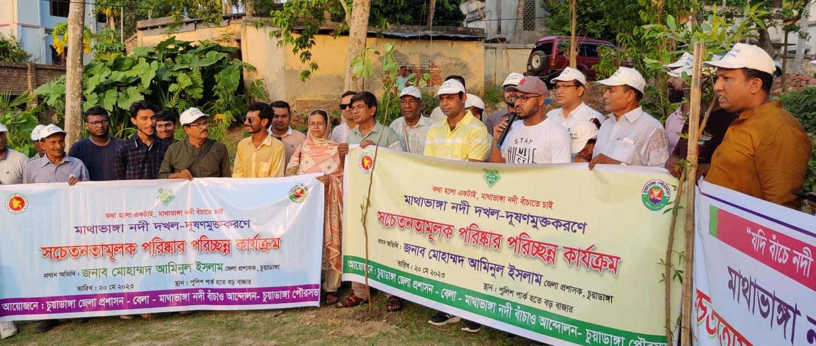চুয়াডাঙ্গায় মাথাভাঙ্গা নদী দখল-দূষণমুক্ত করতে সচেতনতামূলক পরিচ্ছন্নতা অভিযানকালে জেলা প্রশাসক