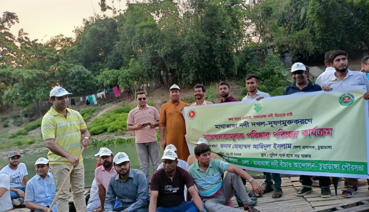 চুয়াডাঙ্গায় মাথাভাঙ্গা নদী দখল-দূষণমুক্ত করতে সচেতনতামূলক পরিচ্ছন্নতা অভিযানকালে জেলা প্রশাসক