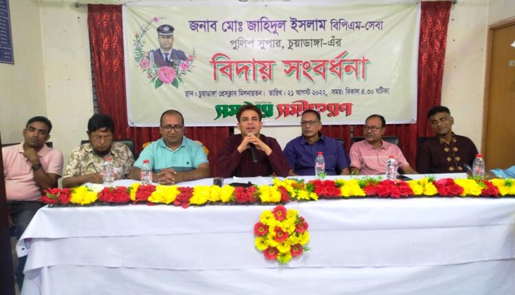 চুয়াডাঙ্গার বিদায়ী পুলিশ সুপার জাহিদুল ইসলামকে সংবর্ধনা অনুষ্ঠিত