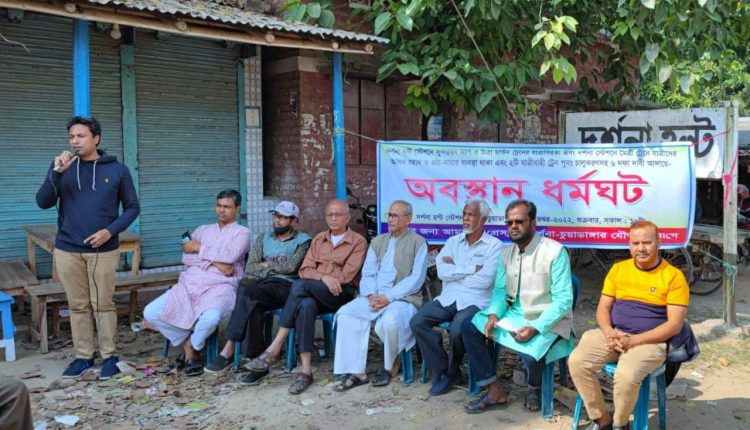 সুন্দরবন-চিত্রা ট্রেন ডাউন স্টপেজসহ ৬ দফা দাবিতে দর্শনায় অবস্থান ধর্মঘট