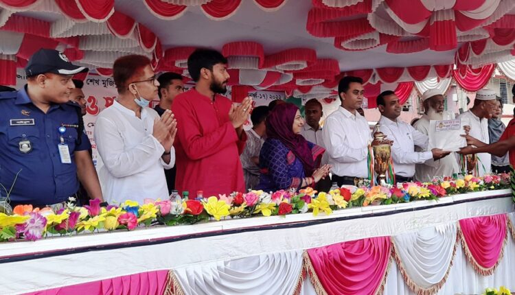 আলমডাঙ্গা ব্যুরো: আলমডাঙ্গায় বঙ্গবন্ধু শেখ মুজিবুর রহমান জাতীয় গোল্ডকাপ টুর্নামেন্ট বালক (অনূর্ধ্ব-১৭) ২০২২’র সমাপনী ও পুরস্কার বিতরণ অনুষ্ঠিত হয়েছে। গতকাল সোমবার বিকেল ৪টায় পাইলট সরকারি মাধ্যমিক বিদ্যালয়ের এটিম মাঠে বঙ্গবন্ধু শেখ মুজিবুর রহমান জাতীয় গোল্ডকাপ টুর্নামেন্ট বালক (অনূর্ধ্ব-১৭)’র ফাইনাল খেলা অনুষ্ঠিত হয়। ফাইনাল খেলায় ভাংবাড়িয়া ইউনিয়ন ২-১ গোলে খাদিমপুর ইউনিয়ন পরাজিত করে জয়লাভ করে। পুরস্কার বিতরণী অনুষ্ঠানে উপজেলা নির্বাহী অফিসার রনি আলম নূরের সভাপতিত্বে প্রধান অতিথি ছিলেন জেলা প্রশাসক মোহাম্মদ আমিনুল ইসলাম খান।