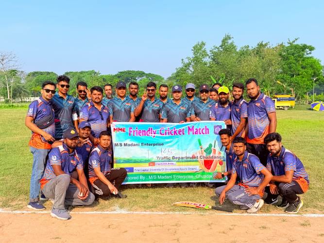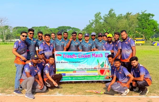 স্টাফ রিপোর্টার: চুয়াডাঙ্গায় অত্যন্ত আনন্দঘন ও সৌহার্দ্যপূর্ণ পরিবেশে এম এস মাদানী এন্টারপ্রাইজ এবং জেলা ট্রাফিক বিভাগের মধ্যে ফেন্ডলি প্রীতি ক্রিকেট ম্যাচ অনুষ্ঠিত হয়েছে। গতকাল শুক্রবার সকাল ৮টায় ফার্স্ট ক্যাপিটাল ইউনিভার্সিটি মাঠে এই খেলার আয়োজন করা হয়। ম্যাচের শুরুতে টসে জিতে এম এস মাদানী এন্টারপ্রাইজের অধিনায়ক সাজ্জাদুর রহমান সাজু প্রথমে ফিল্ডিং করার সিদ্ধান্ত নেন। ব্যাটিংয়ে নেমে ট্রাফিক বিভাগ নির্ধারিত ১৬ ওভারে ৬ উইকেট হারিয়ে ১৩৬ রানের একটি চ্যালেঞ্জিং স্কোর দাঁড় করায়। ১৩৭ রানের জয়ের লক্ষ্যে খেলতে নেমে এম এস মাদানী এন্টারপ্রাইজ বেশ রোমাঞ্চকর লড়াই উপহার দেয়। শেষ পর্যন্ত ১৫.৩ ওভারে ৭ উইকেট হারিয়ে তারা জয়ের বন্দরে পৌঁছে যায়। দলের জয়ে এবং বল হাতে দুর্দান্ত নৈপুণ্য দেখিয়ে ৫টি উইকেট শিকার করে ‘ম্যান অব দ্য ম্যাচ’ নির্বাচিত হন মাদানী এন্টারপ্রাইজের অধিনায়ক সাজ্জাদুর রহমান সাজু। খেলা শেষে এক জমকালো পুরস্কার বিতরণী অনুষ্ঠানের আয়োজন করা হয়। অনুষ্ঠানে অতিথি হিসেবে উপস্থিত ছিলেন সহকারী পুলিশ সুপার অনির্বাণ, এম এস মাদানী এন্টারপ্রাইজের স্বত্বাধিকারী ইকবাল মাহমুদ টিটু, ট্রাফিক ইনচার্জ (প্রশাসন) আমিরুল ইসলাম, ইউনিলিভারের এরিয়া ম্যানেজার মতিউর রহমান, সার্জেন্ট হাসান ও নবাবসহ স্থানীয় গণ্যমান্য ব্যক্তিবর্গ। বক্তারা এ ধরনের আয়োজনের প্রশংসা করে বলেন, পেশাগত ব্যস্ততার মাঝে এ জাতীয় ক্রীড়া প্রতিযোগিতা শরীর ও মনকে সতেজ রাখে এবং পারস্পরিক সম্পর্ক আরও সুদৃঢ় করে।
