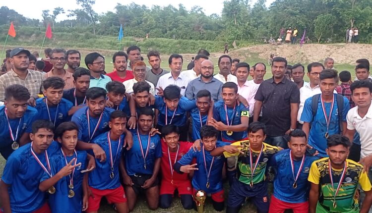 স্টাফ রিপোটার: বঙ্গবন্ধু শেখ মুজিবুর রহমান জাতীয় গোল্ডকাপ ফুটবল অনূর্ধ্ব-১৭ চুয়াডাঙ্গা সদর উপজেলা পর্যায়ের ফাইনাল খেলা ও পুরস্কার বিতরণ সম্পন্ন হয়েছে। গতকাল বুধবার আলুকদিয়া আকুন্দবাড়িয়া স্বপ্নপূরণ ফুটবল মাঠে অনুষ্ঠিত ফাইনালে স্বাগতিক আলুকদিয়া ইউনিয়ন ৩-১ গোলে কুতুবপুর ইউনিয়নকে পরাজিত করে চ্যাম্পিয়ন হওয়ার গৌরব অর্জন করেছে। ফাইনাল খেলা শেষে চ্যাম্পিয়ন-রানারআপ দলের মধ্যে পুরস্কার বিতরণ করা হয়। চুয়াডাঙ্গা সদর উপজেলা নির্বাহী অফিসার শামীম ভুইয়ার সভাপতিত্বে অনুষ্ঠিত পুরস্কার বিতরণ অনুষ্ঠানে প্রধান অতিথি ছিলেন সদর উপজেলা পরিষদ চেয়ারম্যান আলহাজ আসাদুল হক বিশ্বাস। বিশেষ অতিথি ছিলেন সহকারী কমিশনার (ভূমি) মাজহারুল ইসলাম, মাধ্যমিক শিক্ষা অফিসার বিকাশ কুমার সাহা, যুব উন্নয়ন অফিসার জাহাঙ্গীর আলম, কুতুবপুর ইউপি চেয়ারম্যান আলী আহম্মেদ হাসানুজ্জামান মানিক, সদর উপজেলা ক্রীড়া সংস্থার সাধারণ সম্পাদক নাসির আহাদ জোয়ার্দ্দার ও জহুরুল ইসলাম বেলু। পুরস্কার বিতরণ অনুষ্ঠানে প্রধান অতিথি আসাদুল হক বিশ্বাস বলেন, জাতির পিতা বঙ্গবন্ধু শেখ মুজিবুর রহমান জাতীয় গোল্ডকাপ ফুটবল প্রতিযোগিতা তৃণমূলের ফুটবলারদের বিভাগ ও জাতীয় পর্যায়ে খেলার প্লাটফর্ম তৈরি করে দিয়েছে। এ প্লাটফর্ম ব্যবহার করে নিজেকে উজ্জ্বলভাবে মেলে ধরে বাংলাদেশ ফুটবলকে সমৃদ্ধ করতে হবে। তাহলেই এ টুর্নামেন্টের আসল উদ্দেশ্য হাসিল হবে। পুরস্কার বিতরণ অনুষ্ঠানের সভাপতি উপজেলা নির্বাহী অফিসার শামীম ভুইয়া বলেন, নিয়মিত শরীর চর্চা শরীর মনকে যেমন সুস্থ রাখে, তেমনি মাদকসহ অন্যান্য খারাপ অভ্যাস থেকে বিরত রাখে। একই সাথে তিনি খুশি হয়ে আলুকদিয়া আকুন্দবাড়িয়া স্বপ্নপূরণ ফুটবল মাঠ সংস্কারের জন্য ৩ লাখ টাকা দেয়ার ঘোষণা দেন।