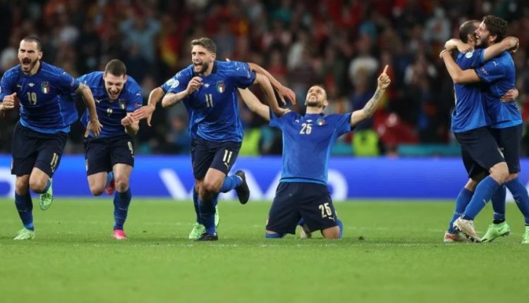 টানটান উত্তেজনাপূর্ণ ম্যাচে স্পেনকে হারিয়ে ইউরো চ্যাম্পিয়নশিপের ফাইনালে পৌঁছে গিয়েছে ইতালি। লন্ডনের ওয়েম্বলি স্টেডিয়ামে নির্ধারিত সময়ে ১-১ গোলে ড্রয়ের পর খেলা অতিরিক্ত সময়ে গড়ায়। কিন্তু বাড়তি ৩০ মিনিটেও কোন গোল না হওয়ায় ম্যাচের ভাগ্য নির্ধারণে যায় টাইব্রেকারে। শেষ পর্যন্ত টাইব্রেকারে ৪-২ গোলের ব্যবধানে হেরে যায় স্পেন। আগামী রোববার বাংলাদেশ সময় দিবাগত রাত ১টায় ইউরো কাপের দ্বিতীয় শিরোপার লক্ষ্যে ফাইনাল খেলতে নামবে ইতালি। তাদের প্রতিপক্ষ হবে ইংল্যান্ড ও ডেনমার্কের মধ্যকার দ্বিতীয় সেমিফাইনাল জয়ী দল। ম্যাচের শুরু থেকেই টিকিটাকা খেলতে দেখা যায় স্পেনকে। প্রথম ১৫ মিনিটে ৭৫ শতাংশের বেশি সময় বল দখলে রেখেছে তারা। এতে সুযোগও পেয়েছিল, কিন্তু বল পেয়েও নিয়ন্ত্রণে রাখতে পারেননি মিকেল ওইয়ারসাবাল।