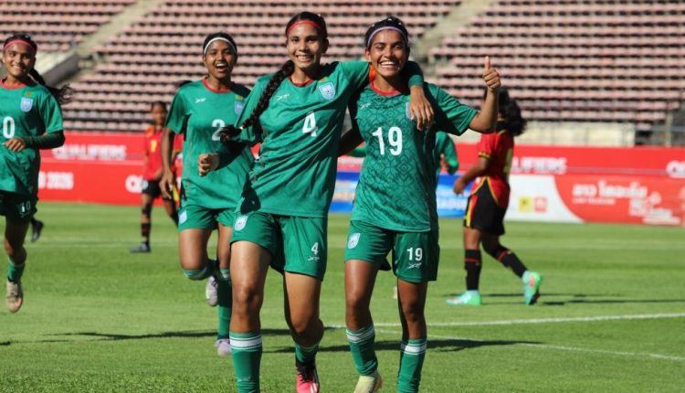 স্টাফ রিপোর্টার: অনূর্ধ্ব-২০ নারী এশিয়ান কাপ বাছাইয়ে পূর্ব তিমুরকে ৮-০ গোলে উড়িয়ে দিয়েছে বাংলাদেশের মেয়েরা। ভিয়েনতিয়েনের নিউ লাওস ইন্টারন্যাশনাল স্টেডিয়ামে দুই অর্ধে প্রতিপক্ষের জালে সমান ৪টি করে গোল দিয়েছেন আফঈদারা। ম্যাচে বাংলাদেশের পক্ষে হ্যাটট্রিক করেছেন তৃষ্ণা। ২০ মিনিটে দলকে প্রথম এগিয়ে দেন শিখা সিনহা। কর্নার থেকে ভেসে আসা বলে ফাঁকায় হেডে লক্ষ্যভেদ করেন তিনি। ৩৩ মিনিটে ব্যবধান দ্বিগুণ করেন শান্তি মার্ডি। তার বাঁ পায়ের কর্নার বাঁক খেয়ে দূরের পোস্টের মাঝে লেগে জড়িয়ে যায় জালে। মিনিট তিনেক পর শান্তি মার্ডির নেওয়া কর্নারে মাথা ছুঁইয়ে জাল কাঁপান নবীরন। প্রথমার্ধের যোগ করা সময়ে সাগরিকার পাস ধরে দৃষ্টিনন্দন প্লেসিং শটে ম্যাচে নিজের প্রথম গোল পেয়ে যান তৃষ্ণা। চার গোলের লিড নিয়ে বিরতিতে যাওয়া বাংলাদেশ দ্বিতীয়ার্ধেও খেলেছে দুরন্ত ফুটবল। এই অর্ধের শুরুর দিকে গোলমুখের জটলার ভেতর থেকে পাওয়া বল জালে জড়িয়ে নিজের দ্বিতীয় গোল পেয়ে যান তৃষ্ণা। ৭২ মিনিটে সাগরিকার পা থেকে আসে দলের ষষ্ঠ গোল। এর মিনিট দশেক পর নিজের হ্যাটট্রিক পূর্ণ করেন তৃষ্ণা। তার হ্যাটট্রিক গোলের নেপথ্যে ছিলেন সেই সাগরিকা। মধ্যমাঠ থেকে বল পেয়ে অনেকটা পথ দৌড়ে বক্সে ঢুকে কাটব্যাক করেন তিনি। বল পেয়ে অনায়াসে তা জালে জড়িয়ে তৃষ্ণা। যোগ করা সময়ে বাংলাদেশ অষ্টম ও শেষ গোলের দেখা পায়। মুনকি আক্তার জটলা থেকে বল পেয়ে ডান পায়ের শটে জাল কাঁপান। আগামী রোববার (১০ আগস্ট) গ্রুপের শেষ ম্যাচে দক্ষিণ কোরিয়ার মুখোমুখি হবে পিটার বাটলারের শিষ্যরা।