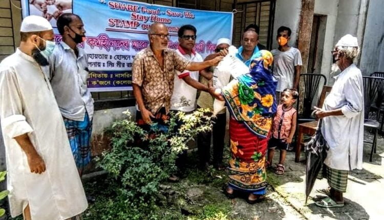 আলমডাঙ্গা ব্যুরো: ‘শেয়ার ফুড সেভ লাইফ, স্ট্যাম্প আউট করোনা’ এ স্লোগানকে প্রতিপাদ্য করে আলমডাঙ্গা কলেজপাড়ায় ঈদ উপলক্ষে করোনায় কর্মহীনদের মাঝে খাদ্য সামগ্রী বিতরণ করা হয়েছে। গতকাল সোমবার প্রবাসী দম্পতি রাসেল সুজন ও মিসেস নাজনীন রাসেল সাথীর পরিচালনায় কলেজপাড়ার হোসনে আরা ফাউন্ডেশনের আর্থিক সহায়তায় এ খাদ্য সামগ্রী বিতরণ করা হয়। খাদ্যসামগ্রীর মধ্যে ছিলো ১০ কেজি চাল, ১ কেজি ডাল, ১ লিটার তেল, ১ কেজি চিনি, ২ কেজি আলু, ১ কেজি পেঁয়াজ, আধা কেজি সেমাই ও ১টা সাবান। এলাকার কর্মহীন ১৩০ পরিবারকে এ খাদ্যসহায়তা প্রদান করা হয়। খাদ্যসহায়তা বিতরণে সার্বিক সহযোগিতা করেন নাজনীন সুলতানা বীথি, উজ্জ্বল খন্দকার, বিদ্যুত হোসেন, মঞ্জু, রানা, রাজু, মোল্লা জাফর ইকবাল জুয়েল, আব্দুর রাজ্জাক, সাংবাদিক শাহ আলম মন্টু, এমদাদ হোসেন, মাসুদ রানা লিপু প্রমুখ। খাদ্যসামগ্রী বিতরণের পূর্বে প্রবাসী দম্পতি রাসেল সুজন ও মিসেস নাজনীন রাসেল সাথীর কল্যাণ কামনায় ও করোনা থেকে মুক্তির জন্য দোয়া করা হয়।