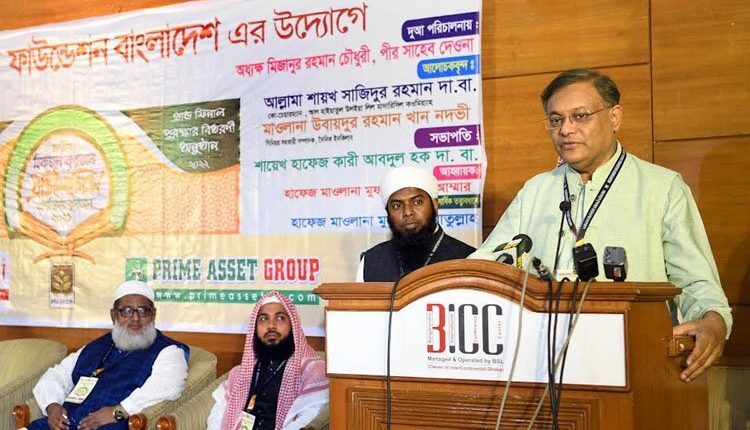 স্টাফ রিপোর্টার: তথ্যমন্ত্রী ও আওয়ামী লীগের যুগ্ম সাধারণ সম্পাদক ড. হাছান মাহমুদ বলেছেন, বেগম জিয়ার প্রতি যথাযথ সম্মান রেখেই বলতে চাই, তার জন্মের তারিখের যেমন ঠিক নেই, পুরস্কারের তারিখও ঠিক নেই। আর যে সংস্থা থেকে সেই পুরস্কার দেয়া হয়েছে বলা হচ্ছে, তাদের ওয়েবসাইটে আবার তার নাম নেই। গতকাল শুক্রবার সন্ধ্যায় ঢাকার আগারগাঁওয়ে বঙ্গবন্ধু আন্তর্জাতিক সম্মেলন কেন্দ্রে (বিআইসিসি) সাংবাদিকদের এ সংক্রান্ত এক প্রশ্নের উত্তরে তিনি একথা বলেন। মন্ত্রী বলেন, বেগম জিয়ার জন্মতারিখ পাঁচটা, বিবাহ রেজিস্টারে একটা, পাসপোর্টে একটা, প্রধানমন্ত্রী হিসেবে ক্রেডেনশিয়ালসে একটা, ম্যাট্রিকুলেশনে যেটাতে তিনি ফেল করেছেন সেখানে একটা, আবার কোভিড সনদে একটা। আবার তিনি পুরস্কার পেয়েছেন ৩১ জুলাই ২০১৮, আর জানা গেল ২০২২ সালে। আর কানাডিয়ান হিউম্যান রাইটস ইন্টারন্যাশনাল অর্গানাইজেশন (সিএইচআরআইও) নামে যে সংস্থা থেকে সেই পুরস্কার দেওয়া হয়েছে বলা হচ্ছে, তাদের ওয়েবসাইটে আবার তার নাম নেই। এ ধরনের তেলেসমাতি দেখার পর জনগণ যখন তাদের নিয়ে হাসছে, তখন বেগম জিয়ার সভাসদরা উদভ্রান্তের মতো কথা বলছেন বলে উল্লেখ করেন ড. হাছান। বিএনপির আরেক বক্তব্য- ইসির সার্চ কমিটি গঠন আওয়ামী লীগকে আবার ক্ষমতায় বসানোরই ষড়যন্ত্র এ নিয়ে প্রশ্ন করলে তিনি বলেন, বিএনপির উন্মেষটাই তো ষড়যন্ত্র, অস্ত্র আর মানুষের লাশের ওপর দিয়ে। তারা সবসময় ষড়যন্ত্রের মধ্যেই থাকেন বলে সবকিছুতেই ষড়যন্ত্র দেখতে পান। তথ্যমন্ত্রী বলেন, অধিকতর স্বচ্ছতা ও জবাবদিহিতার জন্য সার্চ কমিটির মাধ্যমে নির্বাচন কমিশন গঠনের আইন করা হয়েছে এবং সেই কমিটি কাজ শুরু করেছে। নির্বাচন কখনো সরকারের অধীনে হয় না, নির্বাচন কমিশনের অধীনে হয়। নির্বাচনী তফসিল ঘোষণার পর পুলিশের একজন কনস্টেবল বদলির ক্ষমতাও সরকারের হাতে থাকে না। মির্জা ফখরুল এগুলো ভালো করেই জানেন। জনবিচ্ছিন্ন হয়ে গেছেন বলেই এসব কথা বলছেন। তাদের না বলা বাতিক নিয়ে আমি শঙ্কিত। এর আগে বিআইসিসি হলে আহবাবুল কুরআন ফাউন্ডেশন বাংলাদেশর উদ্যোগে জাতীয় হিফজুল কুরআন প্রতিযোগিতা ২০২১ এর গ্রান্ড ফাইনালের পুরস্কার বিতরণ অনুষ্ঠানে প্রধান অতিথি হিসেবে বক্তব্য রাখেন তথ্য ও সম্প্রচারমন্ত্রী। এ সময় হাছান মাহমুদ বলেন, যারা আলেম সমাজকে ধোঁকা দিয়েছে, তাদের শিক্ষাপদ্ধতির স্বীকৃতি ও বিশ্ববিদ্যালয় প্রতিষ্ঠার জন্য প্রতিশ্রুতি দিয়ে তা ভঙ্গ করেছে, তাদেরকে না বলতে হবে। আর যারা আলেমদের জন্য কাজ করেছে, প্রতিশ্রুতি পূরণ করেছে, তাদেরকে হ্যাঁ বলতে হবে। সায়েখ হাফেজ কারী আব্দুল হকের সভাপতিত্বে অধ্যক্ষ মিজানুর রহমান চৌধুরী দোয়া পরিচালনা এবং আল্লামা শায়খ সাজিদুর রহমান ও মাওলানা 