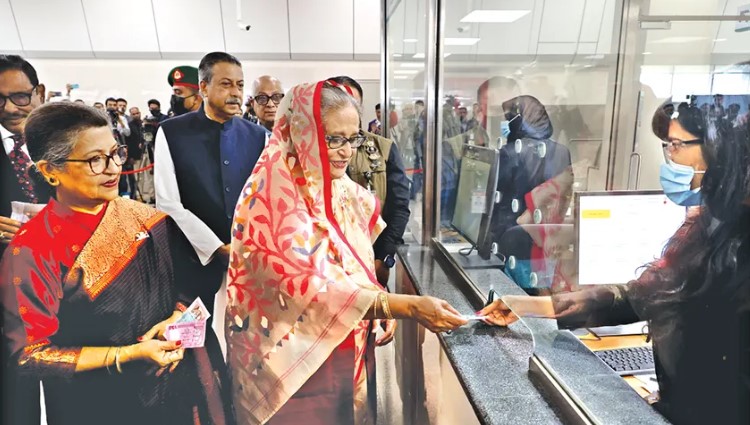 নিজে টিকিট কেটে ট্রেনে উত্তরা থেকে আগারগাঁও গেলেন শেখ হাসিনা ও শেখ রেহানা