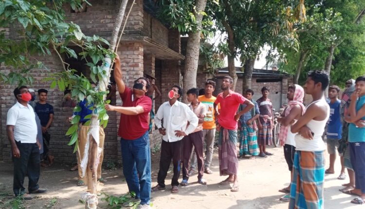 জানা গেছে, চুয়াডাঙ্গার মোমিনপুর ইউনিয়ন পরিষদের চেয়ারম্যান গোলাম ফারুক জোয়ার্দার বৃহস্পতিবার দুপুর খেজুরতলা গ্রামের দুইটি বাড়িতে লাল পতাকা তুলে দেন। এসময় তিনি বলেন, সারা বিশ্বে যখন করোনা ভাইরাসের সংক্রমণ বৃদ্ধি পেয়েছে। চুয়াডাঙ্গা জেলায় ঢাকা থেকে ও দেশের বিভিন্ন জেলা থেকে লোকজন আসা-যাওয়া করছে। তাদের করোনা ভাইরাসের নমুনা না পরীক্ষা করা পর্যন্ত বাড়ি থেকে বের না হওয়ার অনুরোধ করেন। এছাড়া তিনি দুটি পরিবারের বাড়ির সামনে লাল পতাকা তুলে দেন। ।