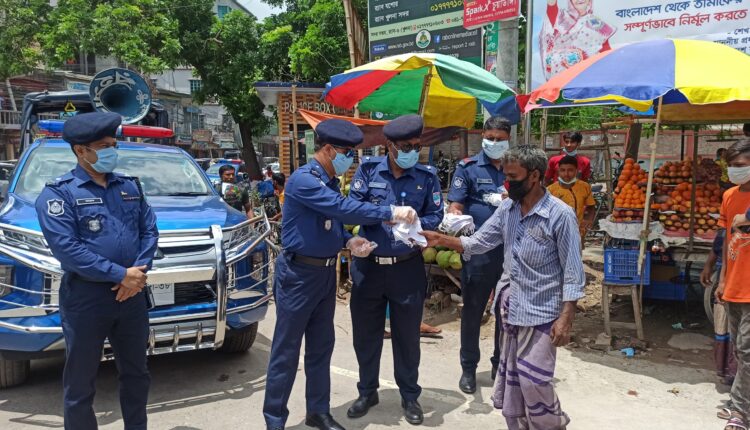 শহীদ হাসান চত্বরে মাস্ক বিতরণ কার্যক্রমের উদ্বোধনকালে পুলিশ সুপার জাহিদুল ইসলাম