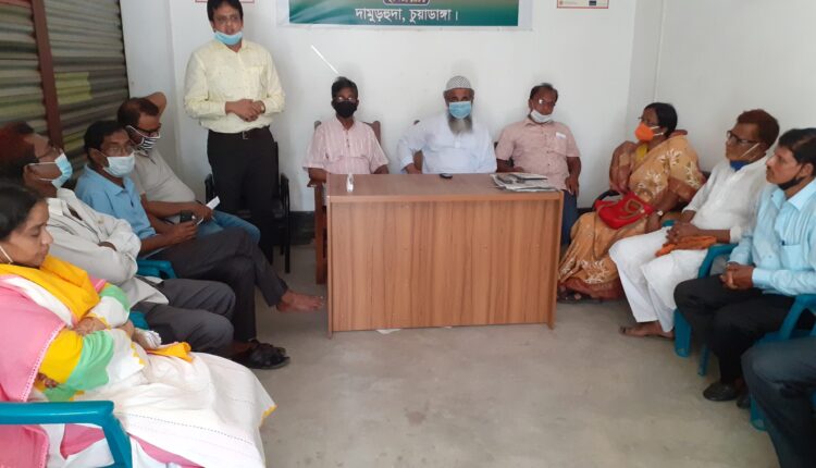 দামুড়হুদা অফিস: দামুড়হুদা উপজেলা লোকমোর্চার মতবিনিময় সভা অনুষ্ঠিত হয়েছে। গতকাল বুধবার বেলা সাড়ে ১১টায় দামুড়হুদা প্রেসক্লাবের অস্থায়ী ভবনে এ মতবিনিময় সভা হয়। সভার শুরুতেই দামুড়হুদা উপজেলা লোকমোর্চার সাবেক সভাপতি প্রয়াত মোহাম্মদ আলী শাহ্ মিন্টুর প্রতি গভীর শ্রদ্ধা রেখে তাকে স্বরণে তার আত্মার মাগফেরাত কামনা করা হয়। এ সময় দামুড়হুদা উপজেলা লোকমোর্চার নেতৃবৃন্দের বক্তবের মাধ্যমে বার বার প্রয়াত মোহাম্মদ আলী শাহ মিন্টু না থাকার শুণ্যতার কথা উঠে আসে। দামুড়হুদা উপজেলা লোকমোর্চার ভারপ্রাপ্ত সভাপতি রহমত উল্লাহর সভাপতিত্বে সভায় উপস্থিত ছিলেন দামুড়হুদা উপজেলা লোকমোর্চার সাধারণ সম্পাদক শহিদুল ইসলাম, সহ-সভাপতি সেলিনা আক্তার, সহ-সম্পাদক আশরাফুল হক, দামুড়হুদা উপজেলা লোকমোর্চার সদস্য দামুড়হুদা প্রেসক্লাবের সভাপতি এম নুরুন্নবী, সাধারণ সম্পাদক হাবিবুর রহমান। এ সময় আরো উপস্থিত ছিলেন দামুড়হুদা উপজেলা লোকমোর্চার সদস্য ইউনুচ আলী, লিয়াকত আলী জোয়াদ্দার, হেলাল উদ্দীন, শওকত আলী, টিপু সুলতান শাহ, সামসুল আলম, লোকমোর্চার কর্মী এসএম জাহিদ হাসান (শাহ্), দর্শনা প্রেসক্লাবের সাধারণ সম্পাদক আওয়াল হোসেন, সাবেক সভাপতি হানিফ ম-ল, ইকরামুল হক পিপুল, সাংবাদিক মিরাজুল ইসলাম মিরাজ, মোজাম্মেল হক প্রমুখ। মতবিনিময় সভায় কিভাবে দামুড়হুদা উপজেলা লোকমোর্চার কার্যক্রমের প্রসার করা যায় সে লক্ষ্যে বিস্তর আলোচনা হয়। এছাড়াও দামুড়হুদা উপজেলা লোকমোর্চার একটি স্থায়ী ঠিকানা (কার্যালয়) নির্ধারণেও সিদ্ধান্ত হয়। এসময় সভায় উপস্থিত সকলের মতামতের ভিত্তিতে দামুড়হুদা উপজেলা লোকমোর্চার কার্যাবলীর গতিবৃদ্ধির লক্ষে এসএম জাহিদ হাসান শাহ্কে আহ্বায়ক করে ৫ সদস্য বিশিষ্ট একটি পর্যবেক্ষণ কমিটি গঠন করা হয়। মতবিনিময় সভার সার্বিক তত্বাবধানে ছিলেন চুয়াডাঙ্গা জেলা লোকমোর্চার সচিব কানিজ সুলতানা ও দামুড়হুদা উপজেলা লোকমোর্চার সমন্বয়কারী কামরুজ্জামান যুদ্ধ।