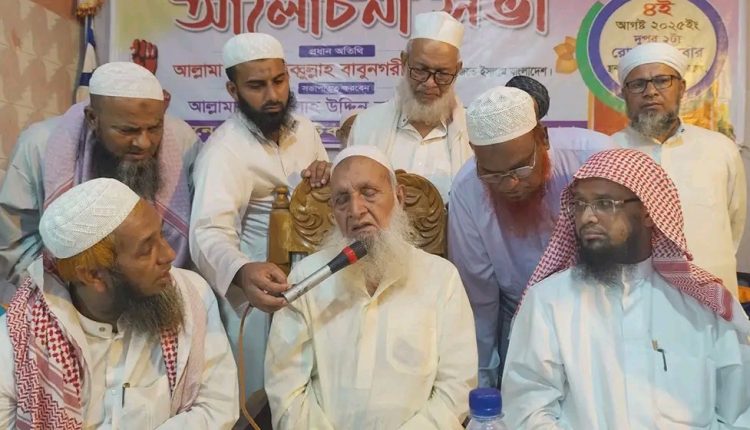আলোচনা সভায় সভাপতিত্ব করেন বিশিষ্ট আলেম ও বুজুর্গ আল্লামা শাহ সালাহউদ্দিন নানুপুরী। এতে আরও বক্তব্য রাখেন এহইয়াউসসুন্নাহ ফাউন্ডেশনের চেয়ারম্যান মাওলানা শেখ হুসাইন মুহাম্মদ শাহজাহান, মাওলানা আইয়ুব বাবুনগরী, মাওলানা জুনাইদ বিন জালাল, মাওলানা আবু তালেব ও আনাস সুলতানি প্রমুখ।