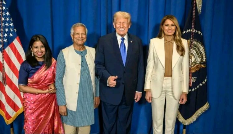 স্টাফ রিপোর্টার:যুক্তরাষ্ট্রের প্রেসিডেন্ট ডোনাল্ড ট্রাম্পের আয়োজিত এক সংবর্ধনা অনুষ্ঠানে অংশ নিয়েছিলেন প্রধান উপদেষ্টা ড. মুহাম্মদ ইউনূস। মঙ্গলবারের সেই অনুষ্ঠানে প্রেসিডেন্ট ট্রাম্প এবং ফার্স্ট লেডি মেলানিয়া ট্রাম্পের সঙ্গে তোলা প্রধান উপদেষ্টার একটি ছবি শনিবার ফেসবুকে প্রকাশ করা হয়। সে ছবি নিয়ে একটি মহল বিতর্ক তৈরির চেষ্টা করে।