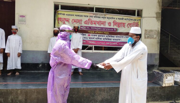 কার্পাসডাঙ্গা / ভ্রাম্যমাণ প্রতিনিধি: দামুড়হুদা উপজেলার দামুড়হুদা লুৎফুন নেসা এতিমখানা ও লিল্লাহ বোর্ডিংএ সেনাবাহিনী সদস্যরা ত্রাণ সামগ্রী ও নগদ অর্থ বিতরণ করেছে। গতকাল শনিবার বেলা ১১ টার দিকে এতিমখানা প্রাঙ্গনে খাদ্য সামগ্রী ও নগদ অর্থ বিতরণ করেন সেনাবাহিনীর সদস্যরা। নগদ অর্থ ও খাদ্য সামগ্রী করোনা ভাইরাস সংক্রমণের প্রতিরোধমূলক সকল নির্দেশনা ও দূরত্ব বজায় রেখে অসহায় ও দুস্থদের মঝে বিতরণ করা হয়েছে। যশোর সেনানিবাসের ১৯ ইস্টবেঙ্গল ৫৫ ডিভিশনের ক্যাপ্টেন ইমরানের নেতৃত্বে সেনাবাহিনী সদস্যরা করোনা ভাইরাসের কারনে সংকটময় মুহূর্তে এতিমখানা ও লিল্লাহ কোডিং কর্তৃপক্ষের মাঝে ত্রাণ ও নগদ অর্থ বিতরণ করেন। এসময় ক্যাপ্টেন ইমরান বলেন, করোনা ভাইরাসের কারনে কর্মহীনদের মাঝে ত্রাণ বিতরণ করার জন্য সকলের এগিয়ে আসা উচিত। করোনা ভাইরাস প্রতিরোধে সকলের সচেতন হতে হবে। বাংলাদেশ সেনাবাহিনী সংকটময় মুহূর্তে দেশ ও জনগনের পাশে ছিলো এবং থাকবে। তিনি আরো জানান, সেনাবাহিনী এ খাদ্য সহায়তা কর্মসূচি অব্যাহত থাকবে।