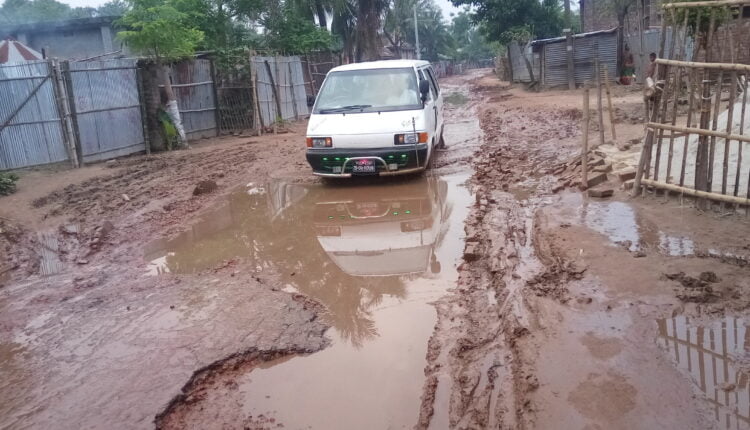 জুড়ানপুর প্রতিনিধি: দামুড়হুদার বিষ্ণুপুর মোড় থেকে রামনগর পর্যন্ত দীর্ঘ ৭ কিলোমিটার সড়কের বেশির ভাগই খানাখন্দে বেহাল অবস্থা। এছাড়া ওই সড়কের বিষ্ণুপুর গ্রামের উত্তরপাড়া থেকে ইব্রাহিমপুরের দিকে হাফ কিলোমিটার রাস্তাটি বেশি ঝুঁকিপূর্ণ। এই অবস্থায় ওপর দিয়ে চলছে সব ধরনের গাড়ী ও ভারী যানবাহন। যেকোনো সময় ঘটতে পারে বড় ধরনের দুর্ঘটনা। সামান্য বৃষ্টিতেই সড়কে পানি জমে সৃষ্টি হয় জলাবদ্ধতা। এতে সড়কটিতে জনসাধারণের চলাচল চরমভাবে ব্যাহত হচ্ছে। প্রতিনিয়তই এই ভাঙা সড়কে ঘটছে ছোট-বড় দুর্ঘটনা।