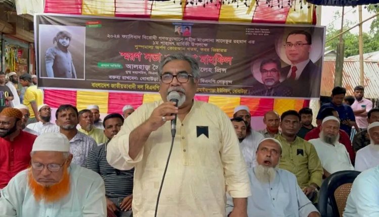 বৃহস্পতিবার বিকালে ময়মনসিংহের ধোবাউড়া উপজেলার দক্ষিণ মাইজপাড়া ইউনিয়নের বাকপাড়া বাজারে গণঅভ্যুত্থানে শহীদ সাদেকুরের স্মরণসভা ও দোয়া মাহফিলে তিনি এসব কথা বলেন।