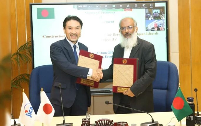 স্টাফ রিপোর্টার: বাংলাদেশ ও জাপানের মধ্যে ৬৩০ মিলিয়ন মার্কিন ডলারের ঋণচুক্তি স্বাক্ষরিত হয়েছে। গতকাল শুক্রবার বাংলাদেশ সরকার ও জাপান সরকারের মধ্যে ৪৬তম ইয়েন লোন প্যাকেজ ২য় ব্যাচ-এর আওতায় কনস্ট্রাকশন অফ ডুয়েল গজ ডাবল লাইন বিটউইন জয়দেবপুর-ঈশ্বরদী সেকশন প্রজেক্ট (আই) শীর্ষক প্রকল্পের এই ঋণচুক্তি স্বাক্ষরিত হয়। অর্থনৈতিক সম্পর্ক বিভাগের এনইসি-২ সভা কক্ষে এ ঋণচুক্তি স্বাক্ষরিত হয়। বাংলাদেশ সরকারের পক্ষে অর্থনৈতিক সম্পর্ক বিভাগের সচিব মো. শাহরিয়ার কাদের ছিদ্দিকী এবং জাপান সরকারের পক্ষে বাংলাদেশের জাইকা অফিসের চিফ রিপ্রেজেন্টেটিভ ইচিগুচি টমোহাইড ঋণচুক্তিতে স্বাক্ষর করেন। ঋণচুক্তির আওতায় জাপান সরকার বাংলাদেশকে মোট ৯২ হাজার ৭৭ মিলিয়ন জাপানিজ ইয়েন (প্রায় ৬৩০ মিলিয়ন মার্কিন ডলার) ঋণ সহায়তা প্রদান করবে।