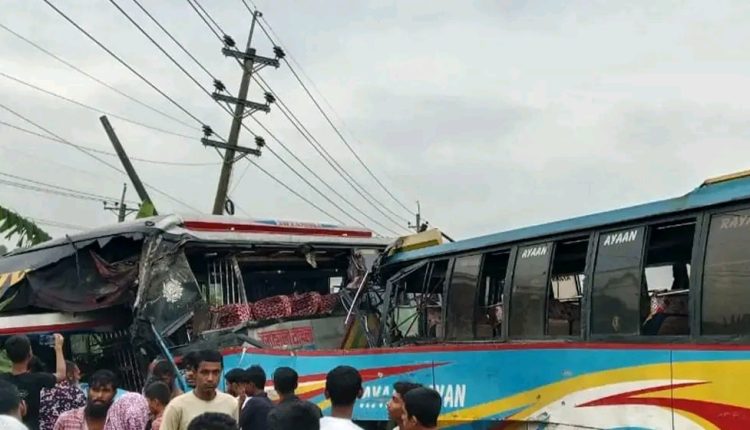 জানা যায়, ঘটনার সময় উল্টো দিক থেকে আসা ঢাকাগামী শ্যামলী বাংলা পরিবহনের একটি বাস নেত্রকোণাগামী আয়ান রায়ান পরিবহনের অপর একটি বাসের সঙ্গে মুখোমুখি সংঘর্ষ হয়। এতে শ্যামলী বাংলা পরিবহনের অজ্ঞাত দুই পুরুষ যাত্রী নিহত হন এবং দুই বাসে ১৫ যাত্রী আহত হন।