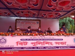 অনুষ্ঠানে সভাপতিত্ব করেন চুয়াডাঙ্গা পুলিশ সুপার জাহিদুল ইসলাম। সভাপতির বক্তব্যে পুলিশ সুপার জাহিদুল ইসলাম বলেন, পুলিশের মানুষের খুব কাছে যাওয়ার ক্ষেত্রে বিট পুলিশিং গুরুত্বপূর্ণ ভূমিকা পালন করছে। পুলিশের সাথে জনগণের সম্পর্ককে আরও দৃঢ় করে তুলেছে। বিট পুলিশিং কার্যক্রমের মাধ্যমে অপরাধ অনেকটা কমে এসেছে। সমাজ থেকে অপরাধ নির্মূল করতে পুলিশকে তথ্য দিয়ে সহযোগিতা করার আহ্বান জানান তিনি। বিশেষ অতিথির বক্তব্য রাখেন জেলা পরিষদের চেয়ারম্যান শেখ শামসুল আবেদীন খোকন, সদর উপজেলা পরিষদের চেয়ারম্যান জেলা আওয়ামী লীগের সিনিয়র সহসভাপতি আসাদুল হক বিশ্বাস, জেলা আওয়ামী লীগের সাংগঠনিক সম্পাদক মুন্সি আলমগীর হান্নান ও অতিরিক্ত পুলিশ সুপার (প্রশাসন) আবু তারেক। আরও বক্তব্য রাখেন সাংবাদিক শাহ আলম সনি, আলমডাঙ্গা পৌরসভার কাউন্সিলর মতিয়ার রহমান। চুয়াডাঙ্গা সরকারি কলেজের সহযোগী অধ্যাপক মুন্সি আবু সাইফের সঞ্চালনায় সভায় আরও উপস্থিত ছিলেন অতিরিক্ত পুলিশ সুপার (হেড কোয়ার্টার) কনক কুমার দাস, সদর থানার অফিসার ইনচার্জ আবু জিহাদ ফকরুল আলম খান, দামুড়হুদা মডেল থানার অফিসার ইনচার্জ আব্দুল খালেক, দর্শনা থানার অফিসার ইনচার্জ মাহাব্বুর রহমান, জীবননগর থানার অফিসার ইনচার্জ সাইফুল ইসলাম, আলমডাঙ্গা থানার অফিসার ইনচার্জ আলমগীর কবীর প্রমুখ। এর আগে জেলা পুলিশের বাৎসরিক পরিদর্শন করেন তিনি। প্রথমে তিনি পুলিশ লাইনে দৃষ্টিনন্দন ও মনোজ্ঞ প্যারেড পরিদর্শন করেন। পরে জেলা পুলিশের বিভিন্ন ইউনিট পরিদর্শন শেষে বিট পুলিশিং সমাবেশে যোগদান করেন ডিআইজি।