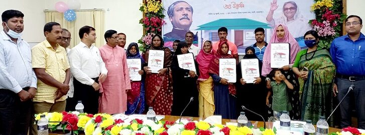 চুয়াডাঙ্গার ভূমিহীন ৪২টি পরিবারের মধ্যে ঘর জমির কাগজ তুলে দিলেন ছেলুন জোয়ার্দ্দার এমপি