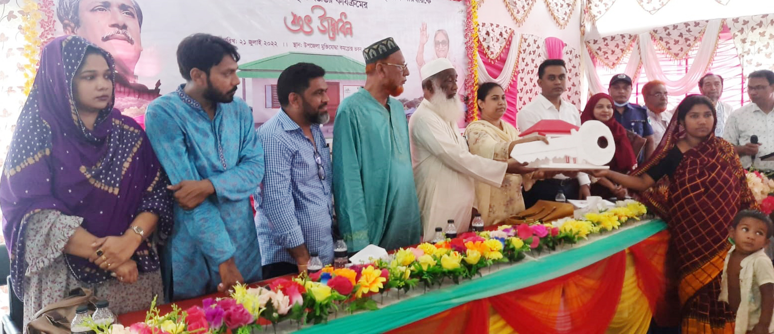 মেহেরপুর অফিস জানিয়েছে, প্রধানমন্ত্রীর ঘোষণা বাংলাদেশের একজন মানুষও ভূমিহীন গৃহহীন থাকবে না। বাস্তবায়নের লক্ষ্যে বাস্তবায়নাধীন ‘আশ্রয়ণ প্রকল্প”-২ এর আওতায় মেহেরপুর সদর উপজেলায় তৃতীয় ধাপে প্রথম পর্যায়ের ৮৪টি পরিবারকে ভূমি ও গৃহ প্রদানের চাবি হস্তান্তর করা হয়েছে। মেহেরপুর সদর উপজেলা পরিষদ মিলনায়তনে আনুষ্ঠানিকভাবে উপজেলা প্রশাসনের সহযোগিতায় নির্মিত গৃহ ভূমিহীন গৃহহীন প্রতিটি পরিবারকে হস্তান্তর করা হয়েছে। গতকাল বৃহস্পতিবার সকাল ১০টার সময় মেহেরপুর সদর উপজেলা পরিষদ মিলনায়তনে অনুষ্ঠানিকভাবে এসব ঘর হস্তান্তর করার মধ্যদিয়ে ভূমি ও গৃহ প্রদানের অনুষ্ঠানিক উদ্বোধন করা হয়। মেহেরপুর স্থানীয় সরকার বিভাগের উপ-পরিচালক মৃধা মোহাম্মদ মোজাহিদুল ইসলাম মেহেরপুর সদর উপজেলা ভূমিহীনদের মাঝে ভূমি ও গৃহপ্রদান করেন। সদর উপজেলা নির্বাহী অফিসার আসাদুজ্জামান রিপনের সভাপতিত্বে অনুষ্ঠিত গৃহপ্রদান অনুষ্ঠানে বিশেষ অতিথির বক্তব্য রাখেন, সদর উপজেলা পরিষদের চেয়ারম্যান অ্যাড. ইয়ারুল ইসলাম, সদর উপজেলা পরিষদের মহিলা ভাইস চেয়ারম্যান লতিফুন্নেছা লতা।