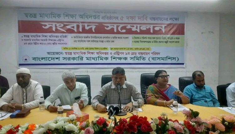স্বতন্ত্র মাধ্যমিক শিক্ষা অধিদপ্তর প্রতিষ্ঠাসহ ৫ দফা দাবি জানিয়েছেন বাংলাদেশ সরকারি মাধ্যমিক শিক্ষকরা।