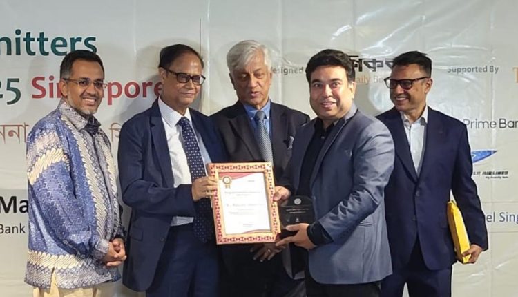 স্টাফ রিপোর্টার: সিঙ্গাপুরে বাংলাদেশ রেমিটার্স সম্মাননা-২০২৫ এ ভূষিত হয়েছেন চুয়াডাঙ্গার কৃতি সন্তান, সিঙ্গাপুরস্থ বাংলাদেশ বিজনেস অব চেম্বারের (বিডিচ্যাম) প্রেসিডেন্ট, সাহিদ গ্রুপের ব্যবস্থাপনা পরিচালক, এনআরবি ওয়ার্ল্ডের প্রেসিডেন্ট আলহাজ সাহিদুজ্জামান টরিক। রোববার সিঙ্গাপুরের নভোটেল হোটেলের জেড বলরুমে আড়ম্বরপূর্ণ অনুষ্ঠানের মাধ্যমে এ সম্মাননা তুলে দেয়া হয় সাহিদুজ্জামান টরিকের হাতে। অগ্রণী ব্যাংক লিমিটেডের বিশেষ কর্মসূচির অংশ হিসেবে সিঙ্গাপুরে অগ্রণী এক্সচেঞ্জ হাউজ প্রাইভেট লিমিটেড এ আয়োজন করে। আড়ম্বরপূর্ণ আয়োজনে প্রধান অতিথি হিসেবে উপস্থিত থেকে বাংলাদেশ রেমিটার্স সম্মাননা-২০২৫ এ ভূষিত সাহিদুজ্জামান টরিকের হাতে সম্মাননা তুলে দেন বাংলাদেশ ব্যাংকের গভর্নর ড. আহসান এইচ মনসুর। প্রধান অতিথির বক্তব্যে বাংলাদেশ ব্যাংকের গভর্নর ড. আহসান এইচ মনসুর প্রবাসীদের জন্য বাংলাদেশ সরকারের বিভিন্ন সুযোগ-সুবিধার কথা উল্লেখ করে বৈধপথে রেমিট্যান্স পাঠানোর জন্য অনুরোধ জানান। এই অনুষ্ঠানে অগ্রণী ব্যাংকের চেয়ারম্যান সৈয়দ আবু নাসের বখতিয়ার আহমেদ, সিঙ্গাপুরে বাংলাদেশের ডেপুটি হাইকমিশনার ড. নজরুল ইসলাম, টাকরাল গ্রুপের চেয়ারম্যান ঘুরমেট সিংসহ সিঙ্গাপুর অবস্থানরত বাংলাদেশ ব্যবসায়ী ও প্রবাসী, বাংলাদেশ ব্যাংক ও অগ্রণী ব্যাংকের বিভিন্ন পর্যায়ের কর্মকর্তারা উপস্থিত ছিলেন। উল্লেখ্য, চুয়াডাঙ্গার কৃতি সন্তান আলহাজ সাহিদুজ্জামান টরিক পর পর ৬ বার চুয়াডাঙ্গা জেলার শ্রেষ্ঠ রেমিট্যান্স যোদ্ধার সম্মাননাও পেয়েছেন।