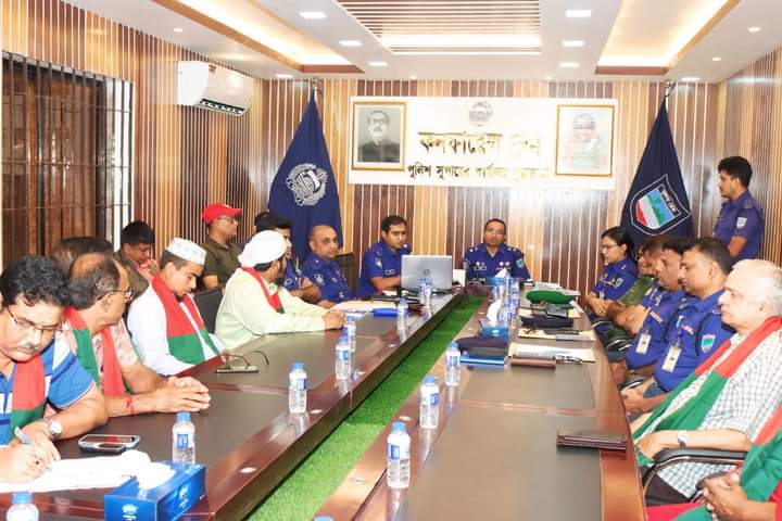 স্টাফ রিপোর্টার: চুয়াডাঙ্গায় শারদীয় দুর্গাপূজা সুষ্ঠুভাবে উদযাপনের লক্ষ্যে পূজা উদযাপন কমিটির সাথে মতবিনিময়সভা অনুষ্ঠিত হয়েছে। চুয়াডাঙ্গা জেলা পুলিশের আয়োজনে পুলিশ সুপারের কার্যালয় সম্মেলন কক্ষে বুধবার বিকেলে আসন্ন শারদীয় দুর্গাপূজা উপলক্ষে সনাতন ধর্মালম্বী নেতৃবৃন্দের সাথে আইন শৃঙ্খলা বিষয়ক মতবিনিময় সভা অনুষ্ঠিত হয়। চুয়াডাঙ্গার পুলিশ সুপার আবদুল্লাহ আল মামুনের সভাপতিত্বে আইনশৃঙ্খলা বিষয়ক মতবিনিময় সভায় আরও উপস্থিত ছিলেন অতিরিক্ত পুলিশ সুপার (ক্রাইম অ্যান্ড অপস) মো. নাজিম উদ্দিন আল আজাদ, পিপিএম, অতিরিক্ত পুলিশ সুপার (সদর সার্কেল) আনিসুজ্জামান, সহকারী পুলিশ সুপার (দামুড়হুদা সার্কেল) জাকিয়া সুলতানা, ডিআইও-১ আবু জিহাদ ফকরুল আলম খানসহ চুয়াডাঙ্গা সকল থানার অফিসার ইনচার্জগণ, চুয়াডাঙ্গা জেলা হিন্দু বৌদ্ধ খ্রিস্টান ঐক্যপরিষদের সভাপতি ডা. মার্টিন হীরক চৌধুরী, চুয়াডাঙ্গা জেলা পূজা উদযাপন পরিষদের সভাপতি কিশোর কুমার আগরওয়ালা, সাধারণ সম্পাদক কিশোর কুমার কু-ু, চুয়াডাঙ্গা জেলা উলামা পরিষদের সভাপতি মো. জুনাইদ আল হাবিবীসহ উপজেলা পূজা উদযাপন কমিটির সভাপতি ও সেক্রেটারি, হিন্দু-বৌদ্ধ-খ্রিস্টান ঐক্য পরিষদের সভাপতি ও সেক্রেটারি, উপজেলা ইমাম পরিষদের সভাপতি ও সেক্রেটারি, ইসলামী ফাউন্ডেশনের কর্মকর্তা ও জেলা পুলিশের বিভিন্ন পদমর্যাদার অফিসারগণ। এ সময় পুলিশ সুপার অবদুল্লাহ আল মামুন বলেন, প্রতিটি ম-পে ২৪ ঘণ্টা পুলিশ ও নিজস্ব স্বেচ্ছাসেবক পাহারা থাকবে। স্বেচ্ছা সেবকদের ব্যাচ পরা থাকতে হবে। প্রতিটি ম-পে সিসি ক্যামেরা বসাতে হবে। ২৪ ঘণ্টা সিসি ক্যামেরায় মনিটরিং করা হবে। পুরুষ ও মহিলারা আলাদা আলাদাভাবে মন্দিরে আসতে হবে। কেউ মাদক সেবন করতে পারবে না। বিশেষ করে মদ্যপান করা যাবে না। কোন মসজিদের পাশে ম-প হলে নামাজ ও আজানের সময় মন্দিরে গান-বাজনা বাদ্যযন্ত্র বন্ধ রাখতে হবে। নামাজ শেষ হলে মসজিদের ইমামের সাথে কথা বলে পুজা-আরতি শুরু করতে হবে। প্রতিমা এমন ঘরে বা এমন জায়গায় স্থাপন করতে হবে যেন প্রাকৃতিক দুর্যোগ বিশেষ করে ঝড়, বৃষ্টি, বাতাসে ক্ষতিগ্রস্থ না হয়। পুলিশ সুপার আরো বলেন, সাম্প্রদায়িক সম্প্রীতির এ দেশে যার যার ধর্মীয় উৎসব সে সে সুন্দরভাবে পালন করবে।