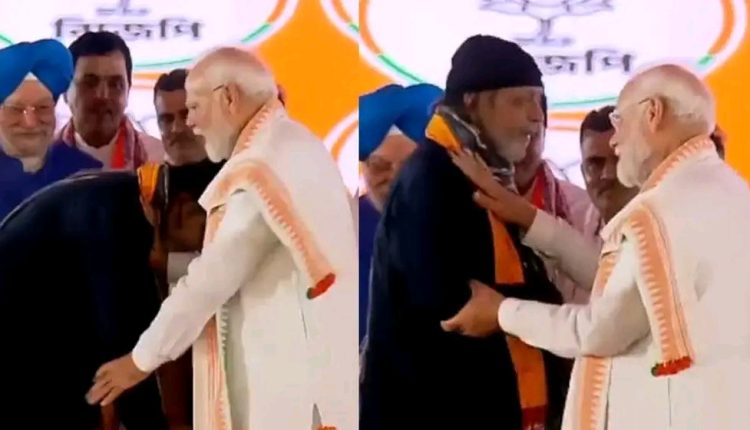 সেই অনুষ্ঠান মঞ্চে বক্তব্য শেষ করে নিজে থেকে উঠে মিঠুনের দিকে এগিয়ে যান নরেন্দ্র মোদি। দুজনে হাসিমুখে হাত মেলান। আর বিদায় জানানোর মুহূর্তেই ঘটল অপ্রত্যাশিত এক ঘটনা। মিঠুন চক্রবর্তী আচমকাই মোদির পা ছুঁয়ে প্রণাম করতে এগিয়ে যান।