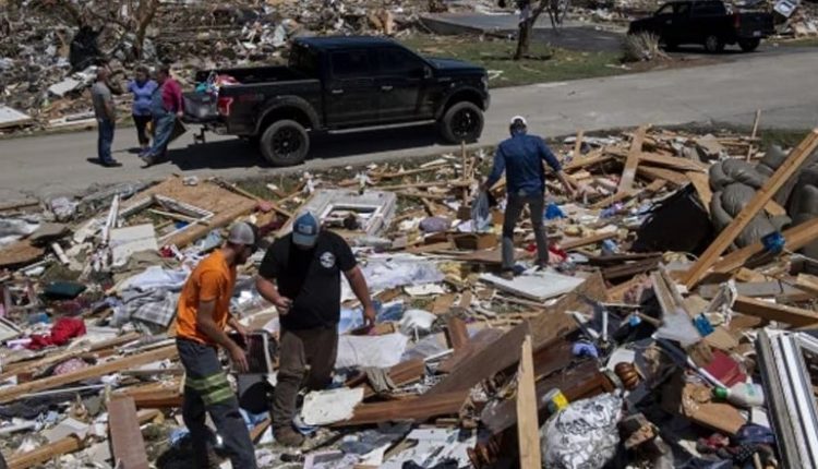 মাথাভাঙ্গা মনিটর: যুক্তরাষ্ট্রের তিনটি অঙ্গরাজ্যে ঘূর্ণিঝড় ও টর্নেডোর তা-বে অন্তত ২৭জন নিহত হয়েছেন। মৃতের সংখ্যা আরও বাড়তে পারে। টর্নেডোতে আহত হয়েছেন আরও বহু মানুষ। এনবিসি নিউজের এক প্রতিবেদনে বলা হয়েছে, কেন্টাকি অঙ্গরাজ্যের ১৮জন, মিসৌরিতে ৭জন এবং ভার্জিনিয়াতে ২জন মারা গেছেন। কেন্টাকির গভর্নর অ্যান্ডি বেশেয়ার জানিয়েছেন, টর্নেডোতে অঙ্গরাজ্যটির ১৮জনের মৃত্যু হয়েছে। মিসৌরিতে সাতজন নিহত হয়েছেন, যার মধ্যে পাঁচজন সেন্ট লুইস শহরের বাসিন্দা। বিবিসির প্রতিবেদনে বলা হয়েছে, শনিবার ভোরে কেন্টাকি রাজ্যের দক্ষিণ-পূর্বের লরেল কাউন্টিতে টর্নেডো আঘাত হানে। কর্মকর্তারা বলছেন, মৃতের সংখ্যা আরও বাড়তে পারে। মিসৌরি কর্তৃপক্ষ জানায়, টর্নেডোতে পাঁচ হাজারের মতো ভবন ক্ষতিগ্রস্ত হয়েছে, ছাদ উড়ে গেছে, বিদ্যুতের লাইন ভেঙে পড়েছে।