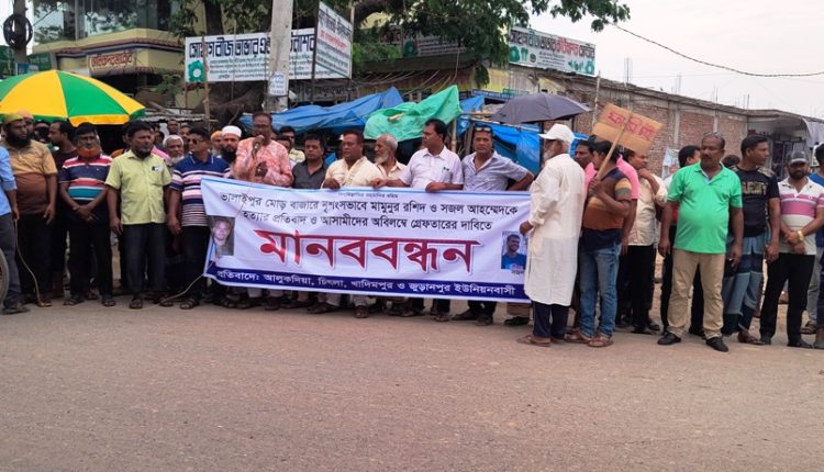 চুয়াডাঙ্গার ভালাইপুরে জোড়া খুনের ঘটনায় বিক্ষোভ মিছিল ও মানববন্ধন