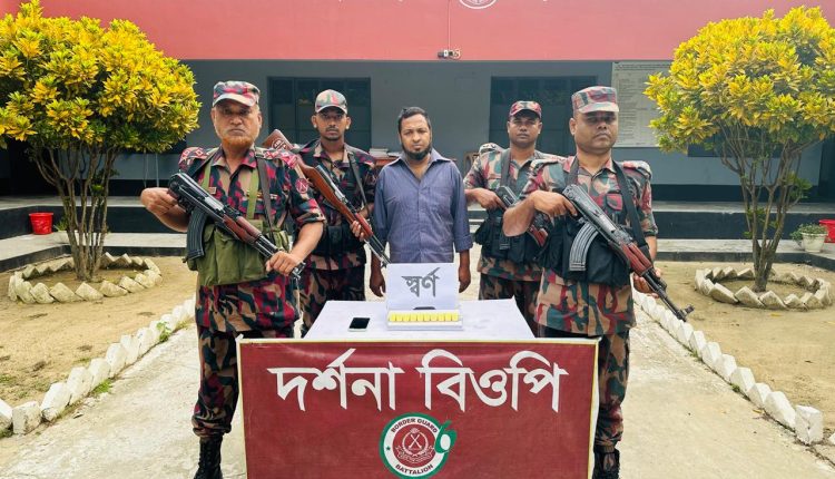 চুয়াডাঙ্গার দর্শনা সীমান্তে ভারতে পাচারের সময় ১০টি স্বর্ণের বার এক পাচারকারী আট