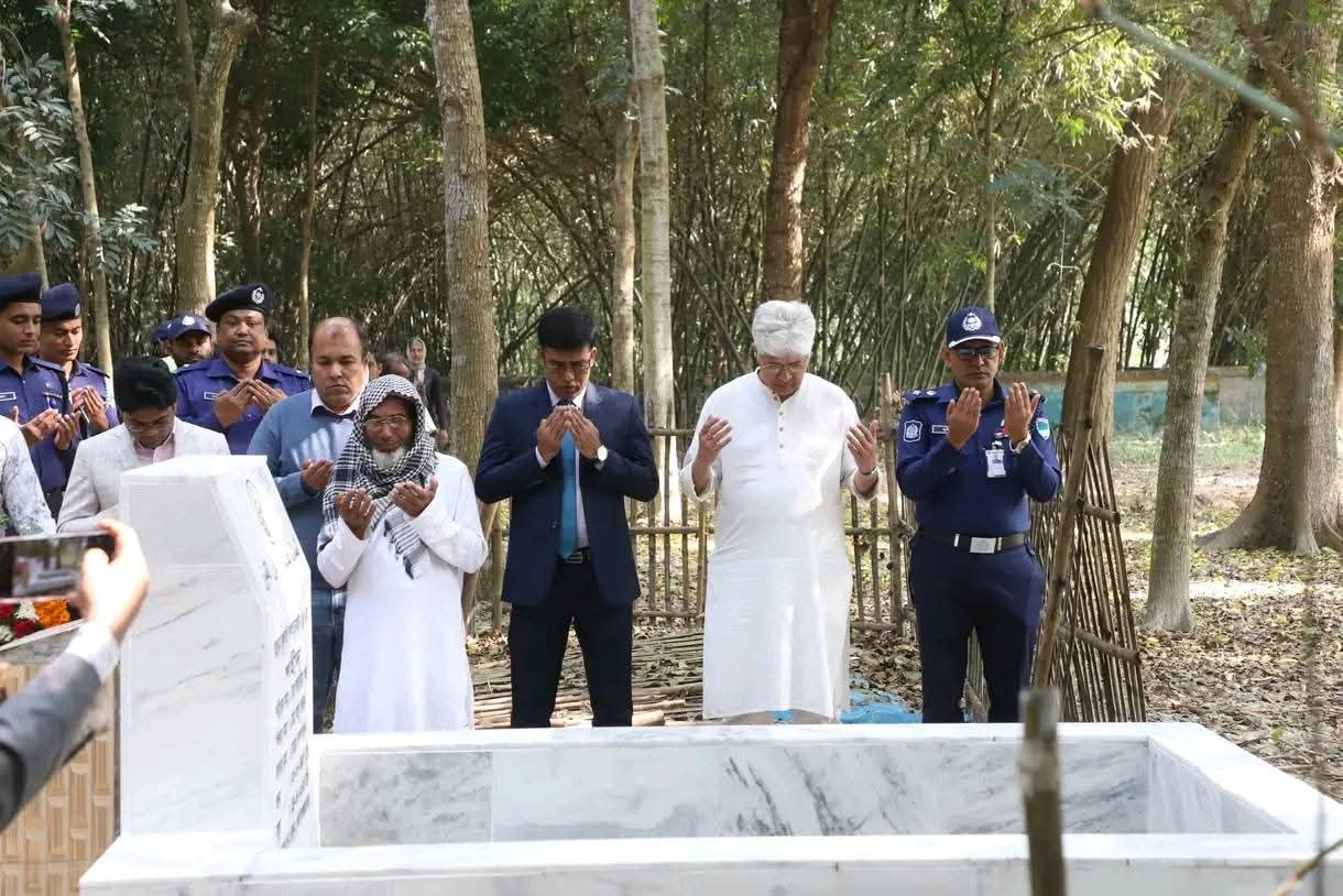 শহিদ শাহরিয়ার শুভ’র বাবা আবু সাইদ, চুয়াডাঙ্গার জেলা প্রশাসক মোহাম্মদ কামাল হোসেন, পুলিশ সুপার মোহাম্মদ মনিরুল ইসলাম, উপদেষ্টার একান্ত সচিব আকন্দ মোহাম্মদ ফয়সাল উদ্দীনসহ শহীদ পরিবারের সদস্যদের নিয়ে কবরে শ্রদ্ধাঞ্জলি নিবেদন করেন উপদেষ্টা। এ সময় তিনি শুভ’র পিতা আবু সাইদের সঙ্গে কথা বলে এবং পরিবারের খোঁজখবর নেন। শহীদ পরিবারের জন্য সরকার ঘোষিত সহায়তা দ্রুত প্রদানের লক্ষ্যে জেলা প্রশাসককে প্রয়োজনীয় ব্যবস্থা নেওয়ার নির্দেশ দেন।