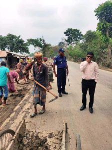 বৃষ্টিতে ভিজে পিচ্ছিল হয়ে মরণ ফাঁদে সড়ক : সরানো হচ্ছে রাস্তার কাদা