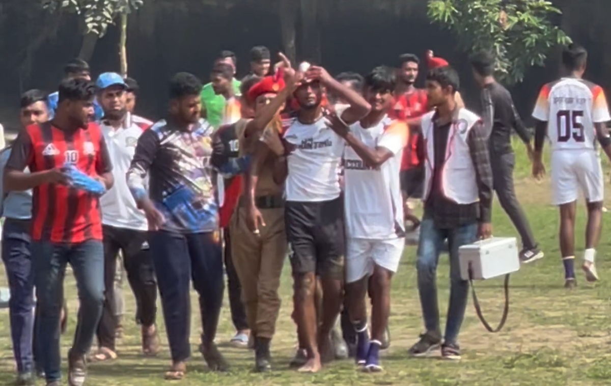 খেলার রেফারী হাফিজুর রহমান বলেন, লাফিয়ে উঠে প্রতিদ্বন্দ্বী দুদলের খেলোয়াড় বল দখলের চেষ্টা করা কালে মাথায়-মাথায় সংঘর্ষ হয়। ফলে দু-জন ফুটবলার রক্তাক্ত যখন হয়। খেলার নিয়ম অনুসারে খেলা থামিয়ে মাঠে চিকিৎসকদেরকে আহ্বান জানানো হয়। চিকিৎসক টিম দু-আহত খেলোয়াড়কে ট্রেসারে করে মাঠের বাইরে নিয়ে গিয়ে চিকিৎসার ব্যবস্থা করে।