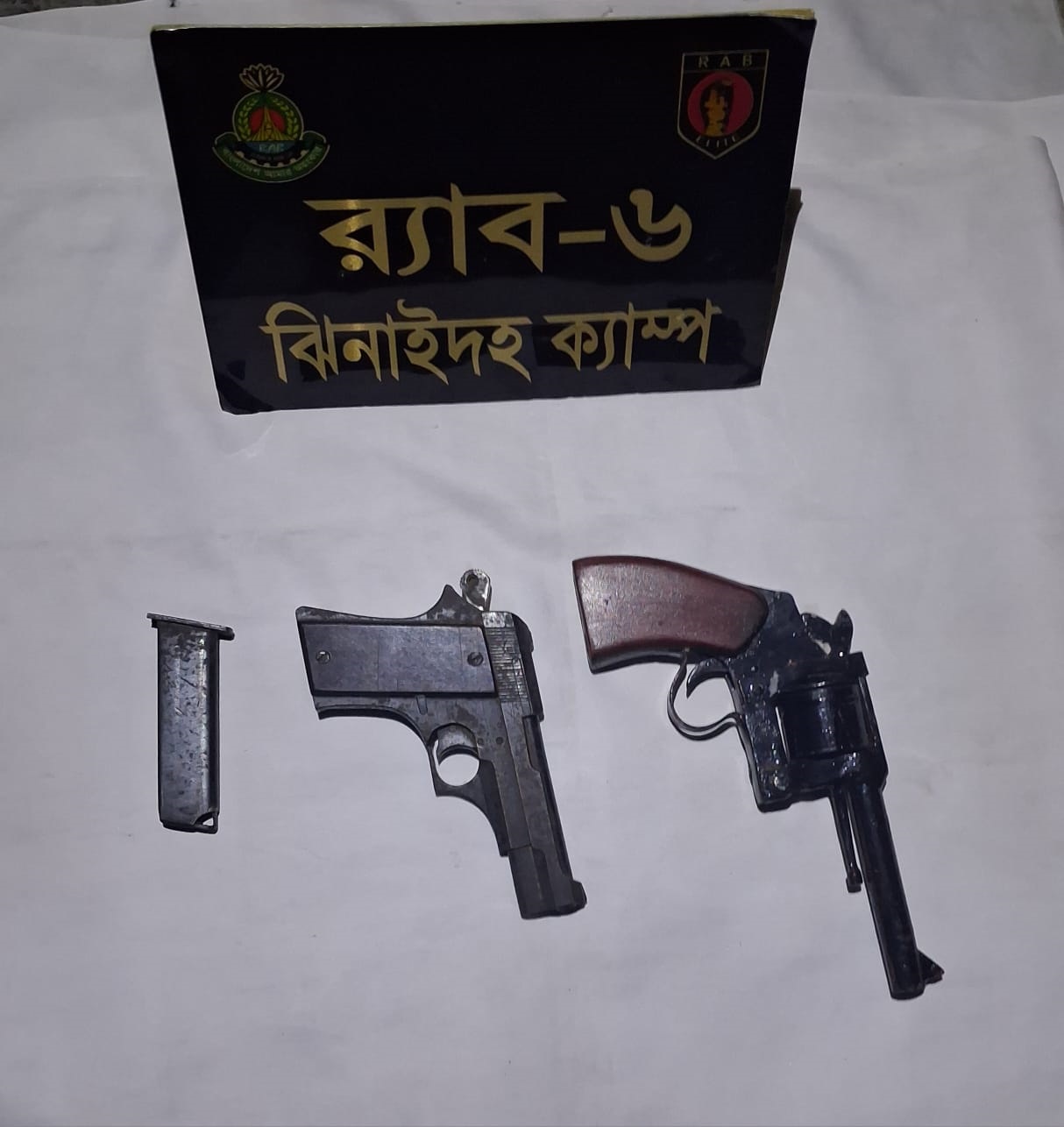 র্যাব-৬, সিপিসি-২ ঝিনাইদহ ক্যাম্পের কোম্পানী কমান্ডার অতিরিক্ত পুলিশ সুপার মেহেদি ইমরান সিদ্দিকী জানান, গোপন সংবাদের ভিত্তিতে তারা জানতে পারে কালীগঞ্জ উপজেলার জামাল ইউনিয়নের গুটিয়ানি বটতলা এলাকায় সন্ত্রাসী কর্মকান্ড হতে পারে। এমন সংবাদের ভিত্তিতে র্যাবের একটি অভিযানিক দল সেখানে অভিযান চালায়। সেসময় কাউকে আটক করতে না পারলেও পরিত্যাক্ত অবস্থায় উদ্ধার করা হয় ১ টি বিদেশী পিস্তল, ১ ব্যারেলযুক্ত রিভোলভার ও ১ টি ম্যাগাজিন উদ্ধার। উদ্ধারকৃত আগ্নেয়াস্ত্র কালীগঞ্জ থানায় সোপর্দ করা হয়েছে বলে জানিয়েছে র্যাব।
