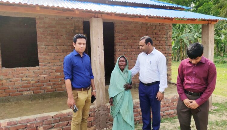 জীবননগরে গৃহহীনদের জন্য নির্মিতব্য ঘর পরিদর্শনকালে জেলা প্রশাসক