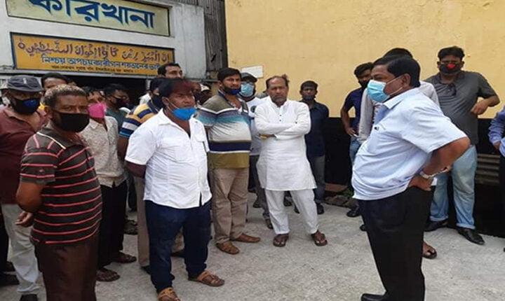 বকেয়া এরিয়া বিল ও বেতন সহ বোনাসের দাবিতে কালীগঞ্জ মোবারকগঞ্জ চিনিকলের ব্যবস্থাপনা পরিচালক কে অবরুদ্ধ করেছে কারখানার শ্রমিকরা। বুধবার সকাল ৮ টায় মিলের কারখানা গেটে শ্রমিকরা ব্যবস্থাপনা পরিচালক আনোয়ারুল কবীরকে প্রায় ১ ঘন্টা অবরুদ্ধ করে রাখেন। এরপর এমডি বিল প্রদানের ব্যাবস্থা করার আশ্বাস দিলে শ্রমিকরা অবরোধ তুলে নেয়। মোবারকগঞ্জ চিনিকল শ্রমিক ইউনিয়নের সদস্য ও কারখানা শ্রমিক বাবুল আক্তার জানান, ২০১৫ সালের জুলাই মাস থেকে অদ্যবধী জাতীয় মুজুরী কমিশনের ঘোষিত এরিয়া বিলের টাকা তারা আজো পায়নি। বার বার হেড অফিসে যোগাযোগ করেও কোন সুরাহা হয়নি। এ ছাড়াও গত দুই মাসের বেতন ঈদ বোনাস এখনও পরিশোধ করেনি মিল কর্তৃপক্ষ। সাধারন শ্রমিক কর্মচারিরা বেতন ভাতা না পেয়ে মানবেতর জীবন যাপন করছে। তাই বাধ্য হয়ে কারখানার শ্রমিকরা এমডিকে অবরোধ করে তাদের দাবীর কথা জানান। অবরোধকালে আরো উপস্থিত ছিলেন শ্রমিক ইউনিয়নের সহ-সভাপতি ফজের আলী ও মশিয়ার রহমান সহ ইউনিয়নের অন্নান্য নেতৃবৃন্দ। এ বিষয়ে মিলের ব্যবস্থাপনা পরিচালক আনোয়ারুল কবীর শ্রমিকদের অবরোধের কথা অস্বিকার করে বলেন, বকেয়া টাকার দাবীতে সকালে কারখানার শ্রমিকরা তার কাছে এসেছিল। কিন্তু বর্তমানে মিলের ফান্ডে এখন টাকা সংকট। মিলের চিনি বিক্রির পর শ্রমিকদের বিল দেওয়ার আশ্বাস দিলে তারা চলে যান বলে জানান তিনি।