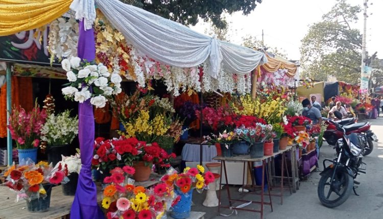 চুয়াডাঙ্গা শহরের ফুলের দোকানিগুলোতে বাহারি সব ফুল দিয়ে পসরা বসিয়েছেন। এসব দোকানেও ক্রেতারা ভিড় করেন ফুল কেনার জন্য। পয়লা ফাল্গুন আর ভালোবাসা দিবসকে ঘিরে কদর বেড়েছে সব ধরনের ফুলের। এ জন্য দামও বেড়েছে কয়েকগুণ। অন্য সময় ১০ টাকায় বিক্রি হওয়া একটি লাল গোলাপের দাম হাকানো হচ্ছে ৫০ টাকা। তবুও ভালোবাসার মানুষের জন্য ফুল কিনতে দোকানে দোকানে ভিড় জমাচ্ছেন ক্রেতারা। ব্যস্ত সময় পার করতে দেখা যায় ফুল ব্যবসায়ীদের। এতে করে ফুল বেচাকেনার জন্য নির্ধারিত স্থানের সীমানা পেরিয়ে ফুটপাতেও নানা রঙের ফুল বিক্রি করতে দেখা যায়।