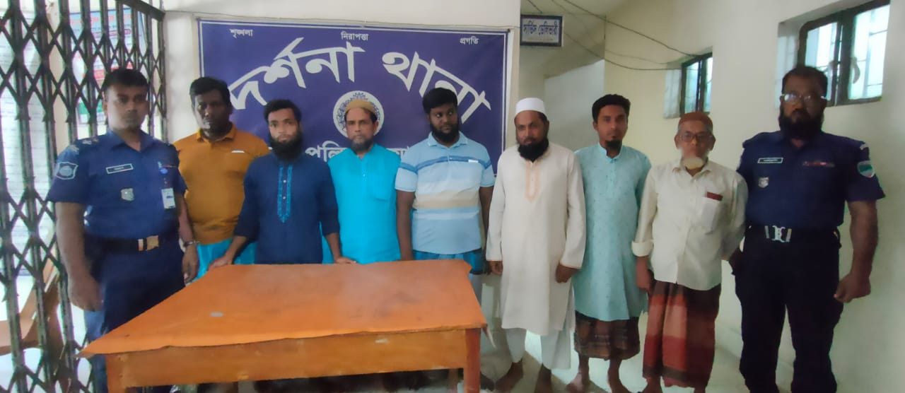 দর্শনা থানায় গ্রেফতাররা হলেন দর্শনা পৌর এলাকার দক্ষিণচাঁদপুর গ্রামের দামুড়হুদা উপজেলা জামায়াতের সেক্রেটারি আমজাদ হোসেন, জামায়াত নেতা তানজিল হোসেন, তিতুদহ গ্রামের নাজমুল হক ও হাফিজুল ইসলাম, নেহালপুর গ্রামের লোকমান হোসেন ও আরাফাত রহমান এবং বেগমপুর ইউনিয়ন জামায়াতের নেতা মোশারফ হোসেন।