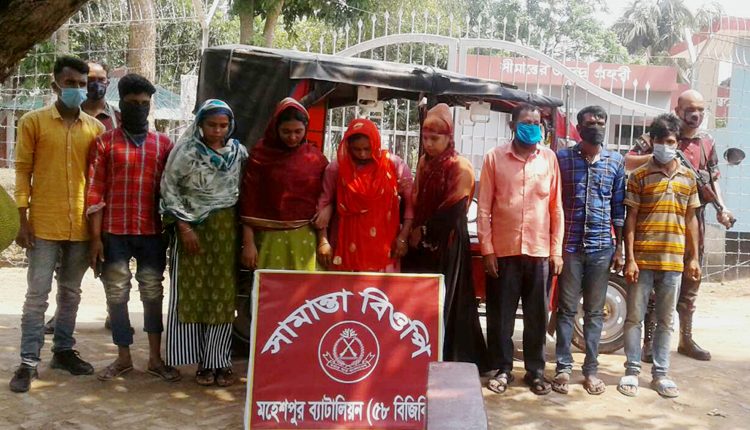 সোমবার ভোরে মহেশপুর ব্যাটালিয়ন (৫৮ বিজিবি) এর অধিনস্ত মাটিলা বিওপির দায়িত্বপূর্ণ এলাকায় সীমান্ত পিলার ৫২/১২এর নিকট থেকে বাংলাদেশের অভ্যন্তরে ঝিনাইদহ জেলার মহেশপুর উপজেলার মাটিলা গ্রামের মোঃ আনারুল ইসলাম এর বাড়ির পূর্ব পার্শ্ব হতে ১৯ জন বাংলাদেশী নাগরিককে অবৈধভাবে ভারত হতে বাংলাদেশে প্রবেশ করার অপরাধে আটক করা হয়। আটকৃত নাগরিকদের মধ্যে ১৭ জন নাটোর জেলার বাসিন্দা (এক) মোঃ নুর হোসেন(৫০),(দুই) মোঃ রহিদুল শেখ (৩৮), (তিন) মোঃ হোসেন শেখ(৪৫), (চার) মোঃ বুলবুল শেখ(৩২), (পাচ) মোঃ বিনত খান(৩৬), (ছয়) মোঃ শাকিরুল হোসেন(১৮), (সাত) মোঃ নিয়াজুল ইসলাম(৩৮), (আট) মোঃ ইয়াহিয়া খান(৩৪), (নয়) মোঃ ফরিদ সরদার (৪২), (দশ) মোঃ নয়ন শেখ(৪০), (এগারো) মোঃ খায়রুল সরদার(৩০), (বারো) মোঃ মোক্তার(৫১), (তেরো) মোঃ আলমগীর হোসেন(৪২), (চৌদ্দ) মোঃ বিপ্রæল শেখ (২৯), (পনেরো)মোঃ জাকারিয়া মাসদ রানা (৩৯), (ষোলো) মোঃ অলিয়ন ইসলাম (৩৪), (সতেরো) মোঃ রকেট শেখ(৩০), ও ০১ জন লক্ষীপুর জেলার বাসিন্দা মোঃ সাগর (১৮) এবং ০১ জন বরিশাল জেলার বাসিন্দা মোঃ রফিকুল ইসলাম (৩২)। এরপর সকাল ৬টার দিকে মহেশপুর ব্যাটালিয়ন (৫৮ বিজিবি) এর অধিনস্ত সামন্তা বিওপির দায়িত্বপূর্ণ এলাকায় সীমান্ত পিলার ৫৪/২- এর অদূরবর্তি বাংলাদেশের অভ্যন্তরে ঝিনাইদহ জেলার মহেশপুর উপজেলার বাশবাড়িয়া গ্রামের পাকা রাস্তার উপর হতে ০৮ জন বাংলাদেশী নাগরিককে অবৈধভাবে ভারত হতে বাংলাদেশে প্রবেশ করার অপরাধে আটক করা হয়। আটককৃত নাগরিকদের মধ্যে ০৩ জন খুলনা জেলার বাসিন্দা (এক) মোঃ আজিজ মোল্লা (১৯), (দুই) মোছাঃ আদরী (৩৮), (তিন) মোছাঃ মনি (২৬), ০১ জন বাগেরহাট জেলার বাসিন্ধা মোঃ মহসিন(৩৯), ০১ জন ফরিদপুর জেলার বাসিন্দা মোঃ এনামুল মোল্লা (২৩), ০১ জন নড়াইল জেলার বাসিন্ধা মোঃ মহিত শেখ (৪৫), ০১ জন যশোর জেলার বাসিন্দা মোছাঃ তানিয়া খাতুন (৩০), ০১ জন নরসিংদি জেলার বাসিন্দা মোছাঃ চম্পা বেগম।