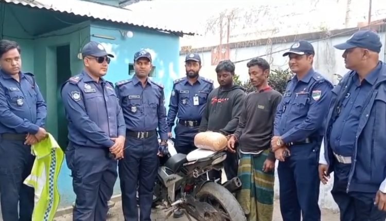 এসময় উক্ত ব্যক্তিদের মোটরসাইকেল থামিয়ে কাগজপত্র দেখতে চাইলে তারা কাগজপত্র দেখাতে ব্যর্থ হয়। পরবর্তীতে তাদের মোটরসাইকেল থেকে নামতে বললে মহিদুলের লুঙ্গির নিচে থাকা পলিথিনে মোড়ানো দুই কেজি একটি গাঁজার পুঁটলি মাটিতে পড়ে যায়।