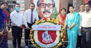 মেহেরপুর অফিস জানিয়েছে, মেহেরপুর জেলা প্রশাসনের উদ্যোগে গতকাল বৃহস্পতিবার সকাল ৯টায় জেলা প্রশাসকের কার্যালয় চত্বরে বিশেষভাবে নির্মিত জাতির পিতা বঙ্গবন্ধু শেখ মুজিবুর রহমানের প্রতিকৃতিতে শ্রদ্ধা জানিয়ে পুষ্পমাল্য অর্পণ করা হয়। জেলা প্রশাসক ড. মোহাম্মদ মুনসুর আলম খান সর্বপ্রথম জনপ্রশাসন প্রতিমন্ত্রী ফরহাদ হোসেন এমপি এবং মেহেরপুর জেলাবাসীর পক্ষ পুষ্পমাল্য অর্পণ করেন। এরপর পরই পুলিশ বিভাগের পক্ষে পুলিশ সুপার রাফিউল আলম, মুক্তিযোদ্ধাদের পক্ষে ক্যাপ্টেন (অব.) আব্দুল মালেক ও জেলা শিল্পকলা একাডেমির পক্ষে সাধারণ সম্পাদক অধ্যাপক সাইদুর রহমান, জেলা পরিষদের পক্ষে জেলা পরিষদের চেয়ারম্যান আলহাজ গোলাম রসূল, মেহেরপুর পৌরসভা মেয়র ও জেলা যুবলীগের পক্ষে আহ্বায়ক মাহফুজুর রহমান রিটন, জেলা আওয়ামী লীগের পক্ষে সহসভাপতি আবদুস সামাদ বাবলু বিশ্বাস, পৌর আওয়ামী লীগের পক্ষে সদর উপজেলা চেয়ারম্যান অ্যাড. ইয়ারুল ইসলাম, সরকারি কলেজের পক্ষে অধ্যক্ষ প্রফেসর শফিউল আলম সরদার, সরকারি মহিলা কলেজের পক্ষে অধ্যক্ষ প্রফেসর রফিকুল ইসলাম, ছহিউদ্দীন ডিগ্রি কলেজের পক্ষ অধ্যক্ষ একরামুল আজিম, টিটিসির পক্ষে অধ্যক্ষ আরিফ আহমেদ, জেলা মহিলা আওয়ামী লীগের পক্ষে সাধারণ সম্পাদিকা লাভলী ইয়াসমিন, সামাজিক বন বিভাগের পক্ষে জাফরুল্লাহ, জেলা মাদকদ্রব্য নিয়ন্ত্রণ অধিদপ্তরের পক্ষে পরিদর্শক আব্দুল মান্নান, ফায়ার সার্ভিস ও সিভিল ডিফেন্সের পক্ষে উপ-সহকারী পরিচালক নজমুজ্জামানসহ বিভিন্ন স্কুল-কলেজ এবং সামাজিক ও সাংস্কৃতিক সংগঠনের পক্ষ থেকে বঙ্গবন্ধুর প্রতিকৃতিতে পুষ্পমাল্য অর্পণ করেন।