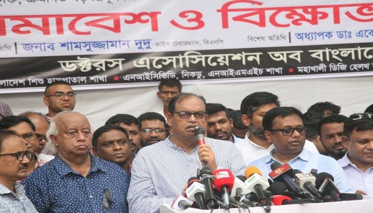 স্টাফ রিপোর্টার: যারা ১৯৭১ সালে স্বাধীনতার বিরোধিতা করেছে, গণতন্ত্রের স্বপক্ষে কাজ করতে পারেনি, তারাই এখন নতুন রুপে, নতুনভাবে এই নির্বাচনকে ঠেকানোর চেষ্টা করছে বলে মন্তব্য করেছেন বিএনপির ভাইস চেয়ারম্যান শামসুজ্জামান দুদু। গতকাল বুধবার জাতীয় প্রেসক্লাবের সামনে ডক্টরস অ্যাসোসিয়েশন অব বাংলাদেশ (ড্যাব) এর উদ্যোগে বিএনপি ভারপ্রাপ্ত চেয়ারম্যান তারেক রহমানের বিরুদ্ধে কটূক্তি, ক্রমাগত ষড়যন্ত্রমূলক মিথ্যাচার ও অপপ্রচার এবং সাম্প্রতিক সকল পাশবিক হত্যাকা-ের দৃষ্টান্তমূলক শাস্তির দাবিতে এক সমাবেশে তিনি এসব কথা বলেন। দুদু বলেন, তারেক রহমানের বিরুদ্ধে যেসব কটুক্তি, ষড়যন্ত্র এবং অমর্যাদাকর বক্তব্য দেয়া হয়েছে সেটির তীব্র প্রতিবাদ জানাচ্ছি। নির্বাচন হলে তারেক রহমান প্রধানমন্ত্রী হবেন, এটি বড় বিষয় নয়। বিষয়টি হচ্ছে Ñবাংলাদেশের মানুষের হৃদয়ে তার জায়গা হয়ে গেছে। জিয়াউর রহমান এবং খালেদা জিয়ার পরে এদেশে সবচেয়ে জনপ্রিয় নেতা হচ্ছেন তারেক রহমান। তিনি বলেন, আমরা জানি মিডফোর্ড হাসপাতালের সামনে যে হত্যাকান্ড সংঘটিত হয়েছে, সেটা নির্মম, নির্দয় এবং ভয়ংকর। এটি পরিকল্পিত। যারা ভিডিও করেছে তাদের হাত একবারের জন্যও কাঁপেনি। তারা পর্যন্ত বাঁধা দেয়নি। যারা সেখানে উপস্থিত ছিলেন তারা অবাক দৃষ্টিতে এই ভিডিওকারীদের দিকে তাকিয়ে ছিলেন। এছাড়াও এই ভিডিও দুদিন পরে প্রকাশ করা হয়েছে। তার আগে আমরা জানি খুলনাতে একটা হত্যাকান্ড সংঘটিত হয়েছে। তার রগ পর্যন্ত কেটে দেয়া হয়েছে। রগ কাটা বাহিনী কারা এটা যদি নাও বলা হয়, দেশের মানুষ তাদেরকে চিনে এবং জানে। বিভিন্ন শিক্ষাপ্রতিষ্ঠানে এরা কত মানুষকে হত্যা করেছে, সেটাও সবাই জানে। ছাত্রদলের সাবেক এই সভাপতি বলেন, বাংলাদেশে সবচেয়ে জনপ্রিয় দল এখন বিএনপি। আমাদের দলের নেতা তারেক রহমান যখন নির্বাচনের কথা বলছেন, গণতন্ত্রের কথা বলছেন, তখনই তার বিরুদ্ধে বিশেষ মহল, যারা নির্বাচনে গেলে কোনো ভবিষ্যত নেই, তারা নির্বাচন ছাড়াই মন্ত্রণালয় দখল করে রাখতে চায়, সেজন্য তারা নতুন নতুন ঘটনা তৈরী করে নির্বাচনকে ঠেকাতে চাচ্ছে। যারা স্বাধীনতার বিরোধিতা করেছে, গণতন্ত্রের স্বপক্ষে কাজ করতে পারেনি, তারাই এখন নতুন রুপে, নতুনভাবে এই নির্বাচনকে ঠেকানোর চেষ্টা করছে বলেও মন্তব্য করেন তিনি। তিনি বলেন, এই আন্দোলনের একমাত্র অর্জন হচ্ছে স্বৈরাচারকে আমরা বিদায় করেছি। এবার একটি নির্বাচন দিয়ে জনগণ যাদেরকে ভোট দিবে, তারা সরকার গঠন করবে এবং দেশ পরিচালনা করবে। সেই রাস্তায় হাটা উচিত। নির্বাচিত সরকার এবং নির্বাচিত প্রতিনিধি না থাকার কারণে দেশের আইনশৃঙ্খলা এবং বিভিন্ন সেক্টরে ব্যবস্থাপনা ভেঙে পড়ছে মন্তব্য করে সাবেক এই সংসদ সদস