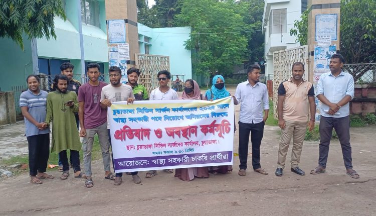 স্বাস্থ্য সহকারী নিয়োগ পরীক্ষায় অনিয়মের অভিযোগ তুলে চুয়াডাঙ্গা সিভিল সার্জন কার্যালয়ের সামনে মানববন্ধন ও অবস্থান কর্মসূচি