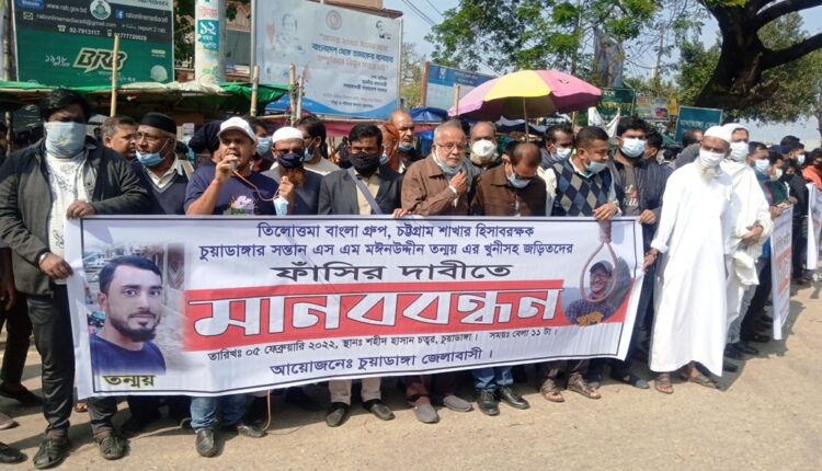 চট্টগ্রামে খুন হওয়া তন্ময়ের হত্যকারীর ফাঁসির দাবিতে চুয়াডাঙ্গায় বিক্ষোভ-মানববন্ধন
